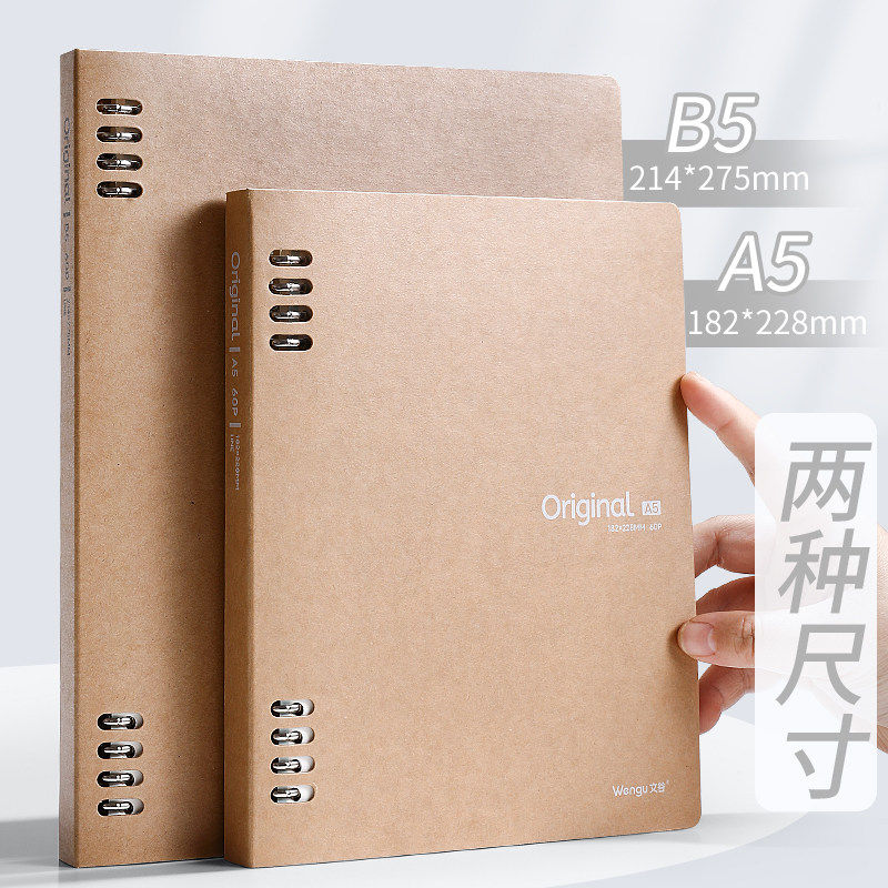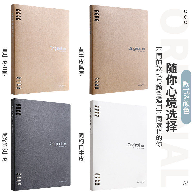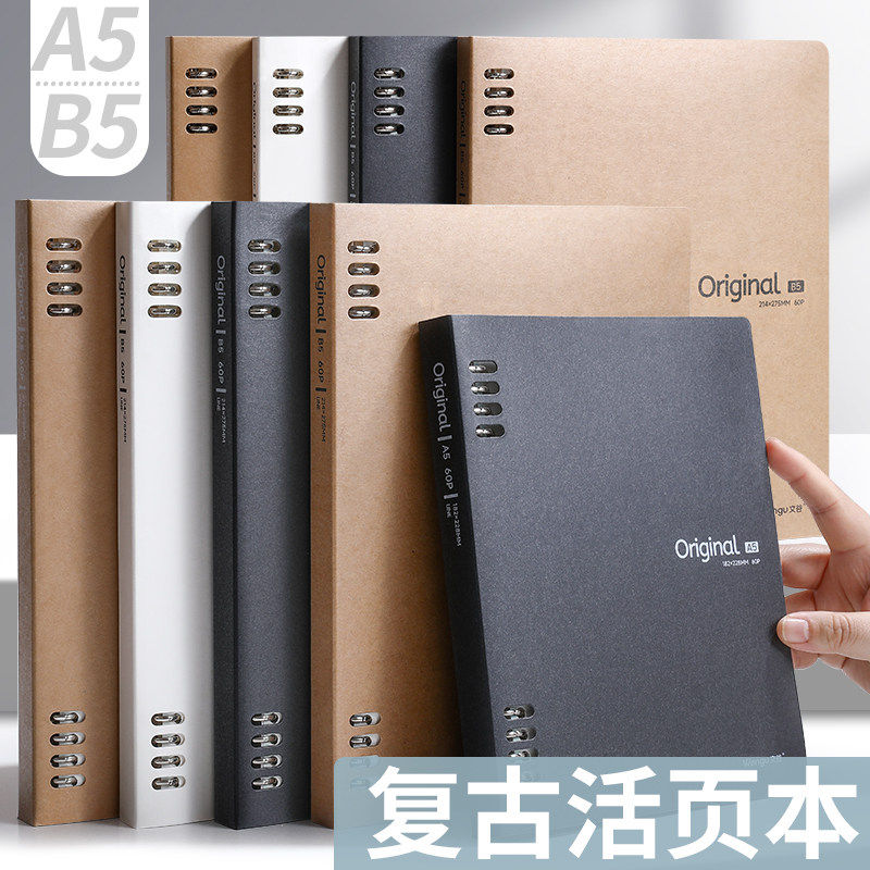 文谷B5复古牛皮纸不硌手铁夹活页本可拆卸A5黑色ins风笔记本本子简约大学生用白色高颜值精致文艺记事本