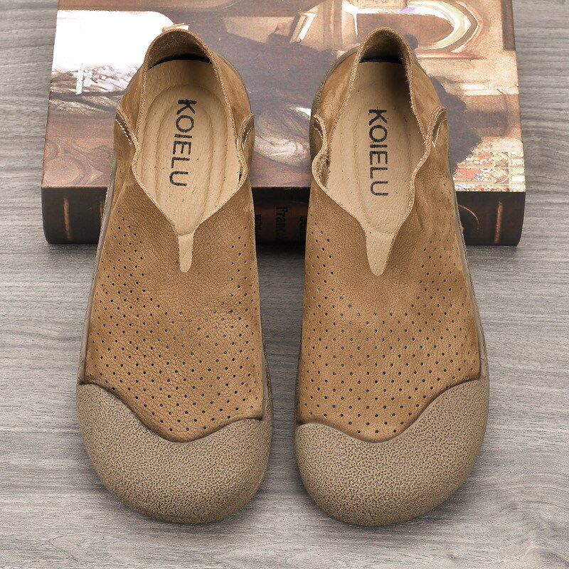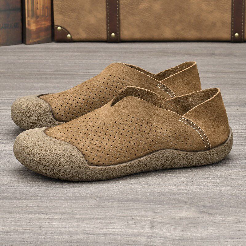 新品夏季一脚蹬透气男鞋头层牛皮单F层皮鞋时尚包头鞋软皮软底轻