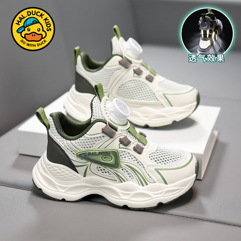 小黄鸭儿童运动鞋2026新款夏季网面镂空透气旋转扣单网鞋男童鞋子