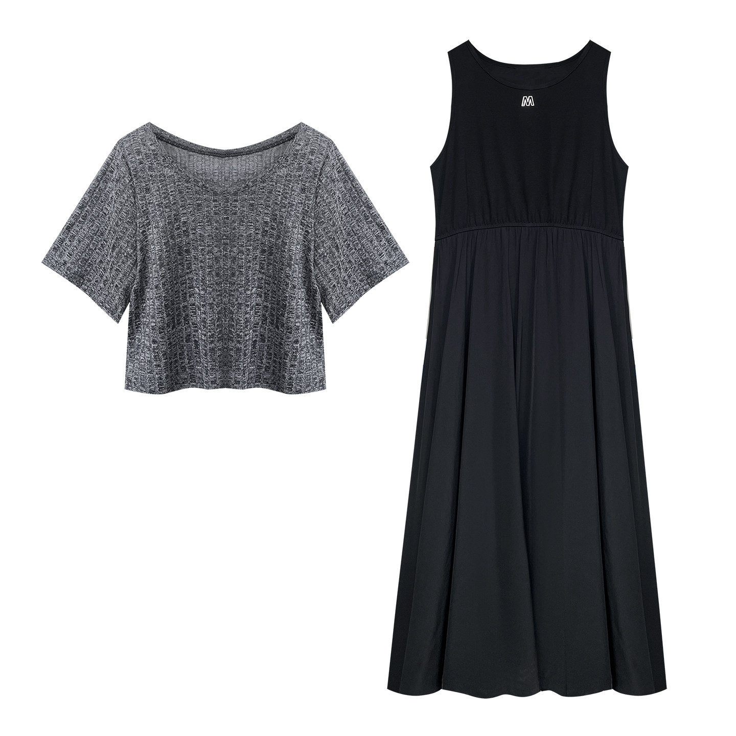 大码女装胖mm显瘦夏装【凹细腰线】真两件罩衫韩范连衣裙两件套装