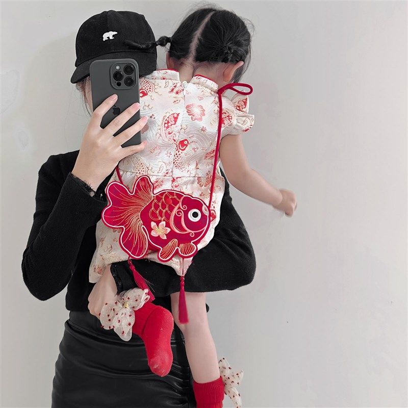 女童连衣裙宝宝新年服装衣服儿童裙子过年服小公主洋气拜年服薄款