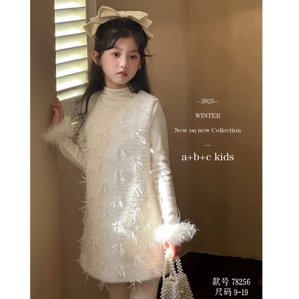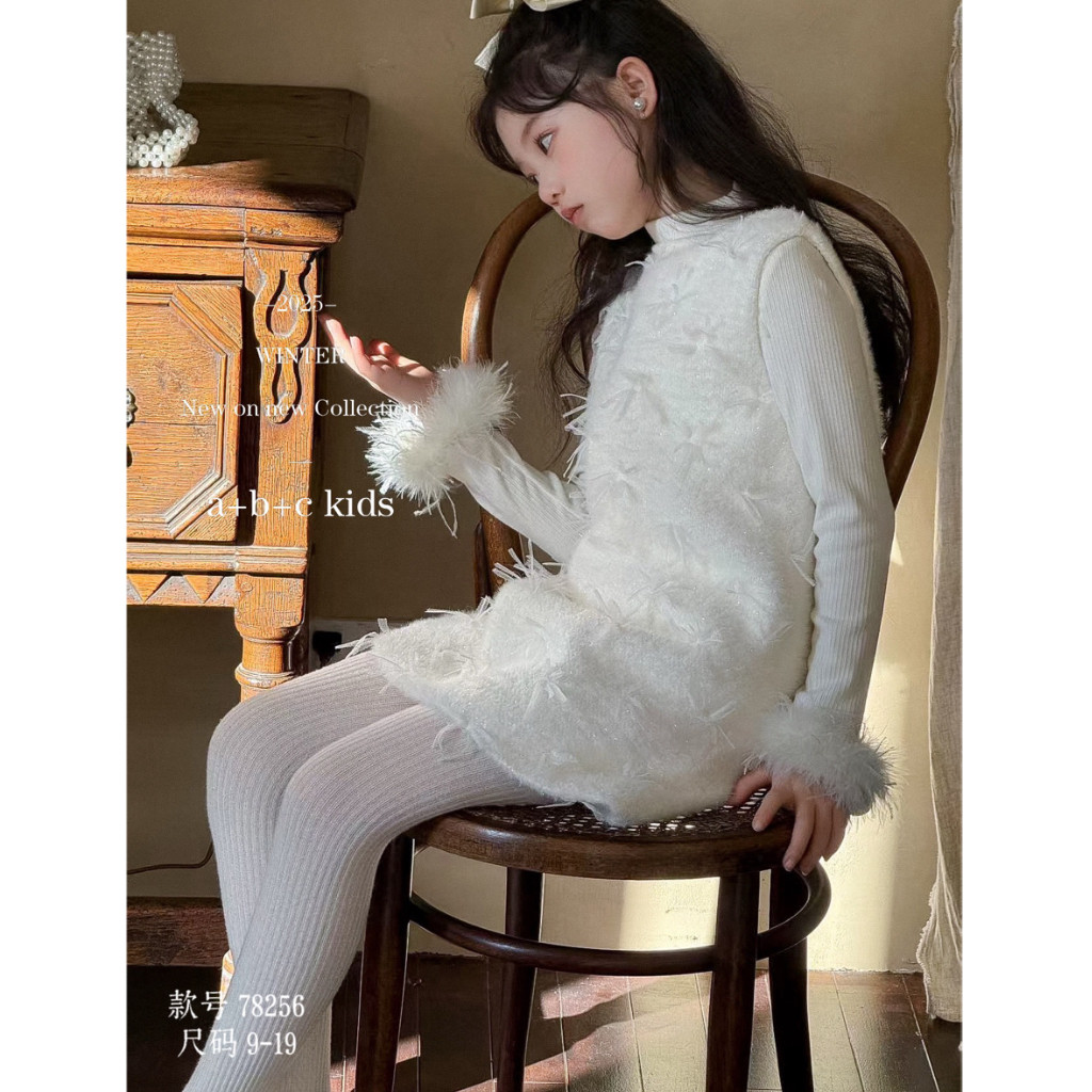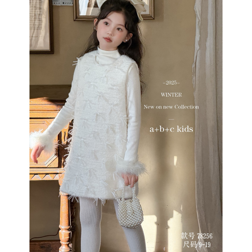 【小香风套装】女童冬季中大童加绒连衣裙亮片背心裙毛衣两件套