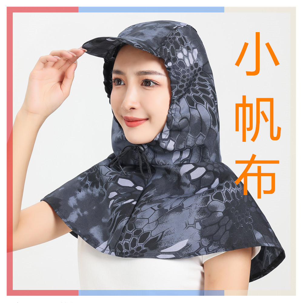 新款薄款男女垂钓户外抽绳披肩打磨涂装防晒防风防尘运动帽