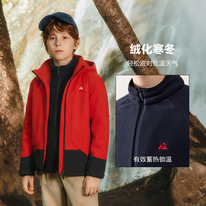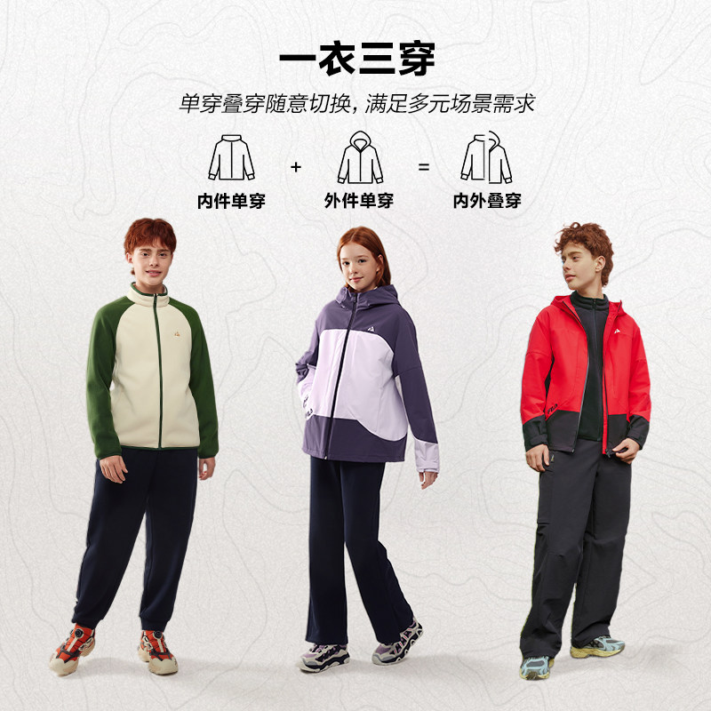 FILA斐乐儿童外套三合一2026春季新款男女童户外服新年款红色上衣