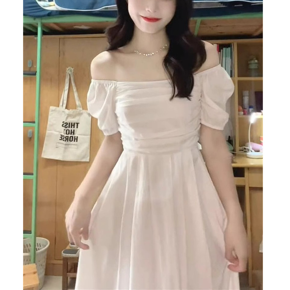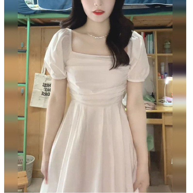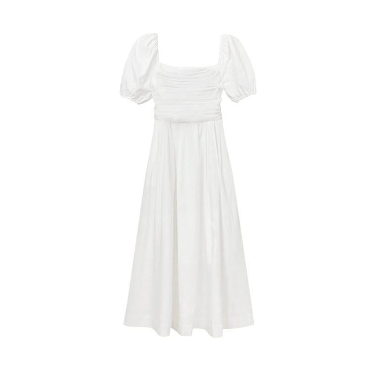 法式温柔方领白色连衣裙女夏季小个子泡泡袖仙女裙气质高腰长裙女