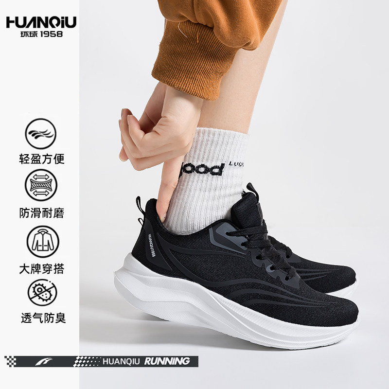 环球黑色运动跑步鞋女款2026新款爆款百搭轻便透气学生校园休闲鞋
