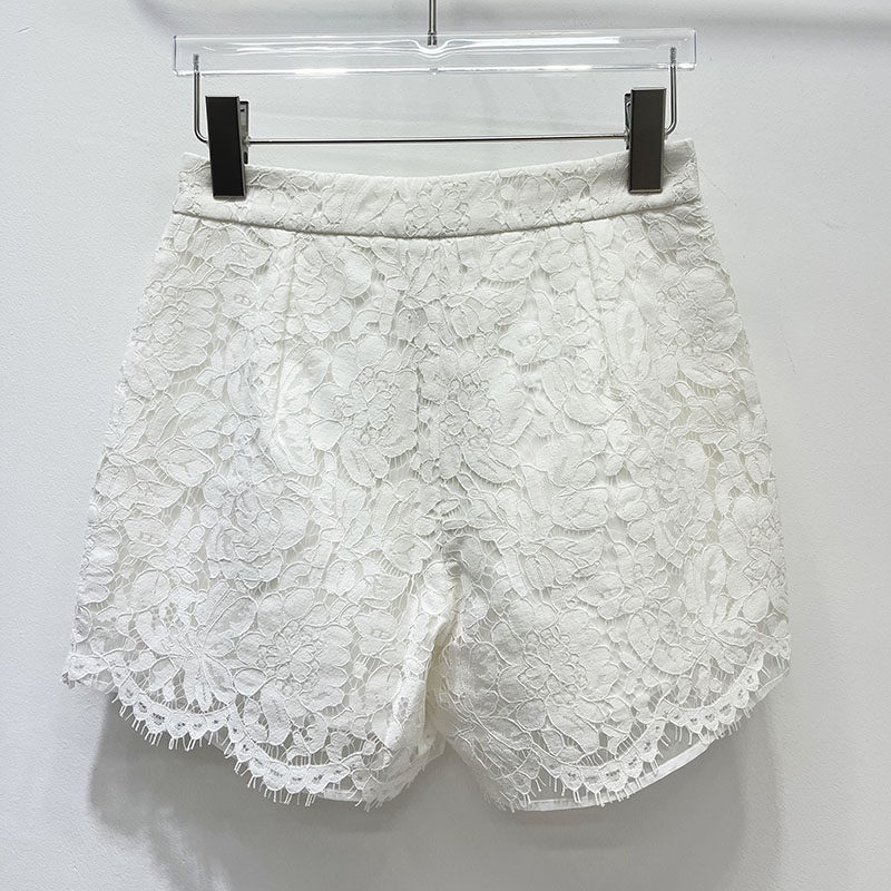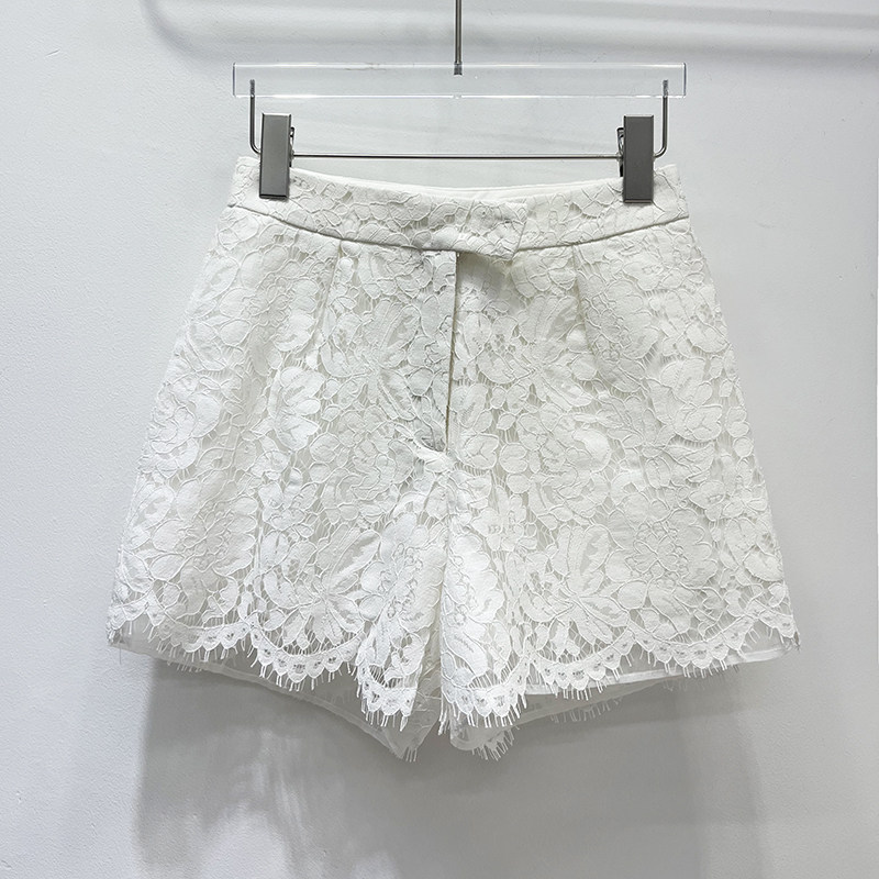短裤女款夏季2026新款白色欧根纱蕾丝阔腿裤外穿简约百搭高腰裤子
