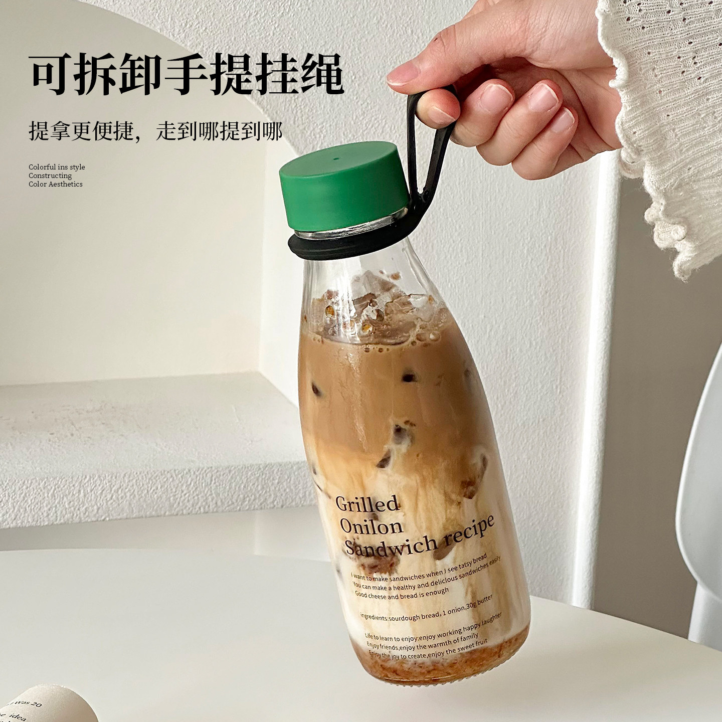 便携随行外带咖啡杯密封带盖喝水玻璃杯透明早餐豆浆牛奶杯随手杯