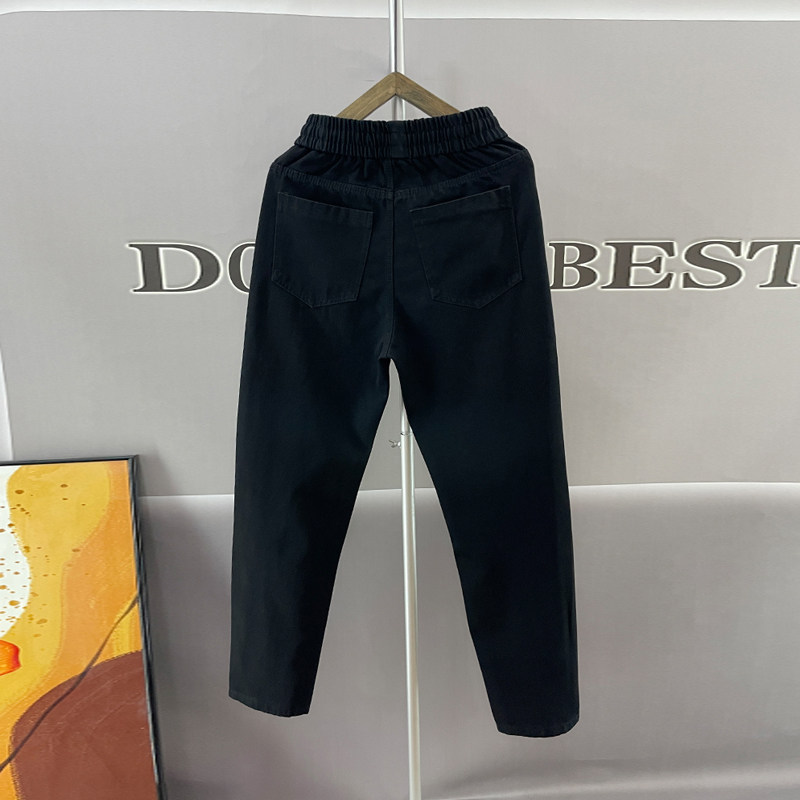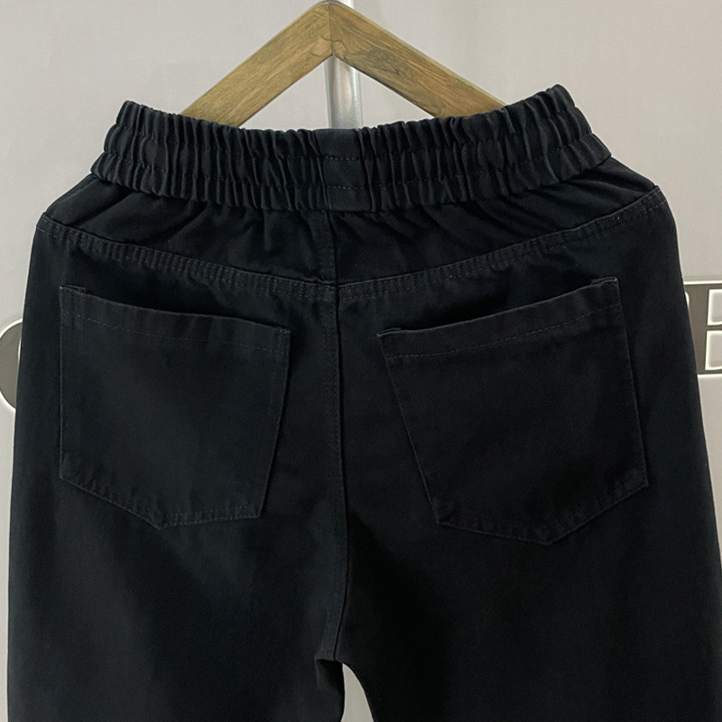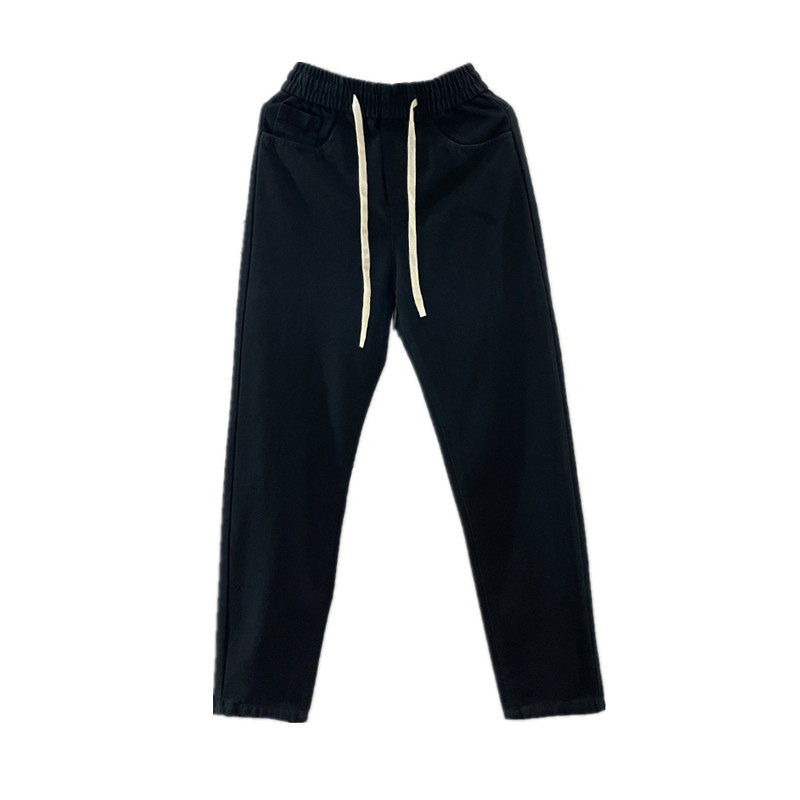 黑色直筒裤男生秋季潮牌宽松简约百搭抽绳松紧腰牛仔裤男款长裤子