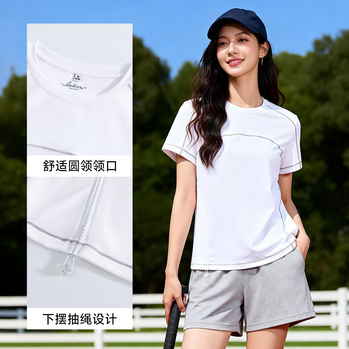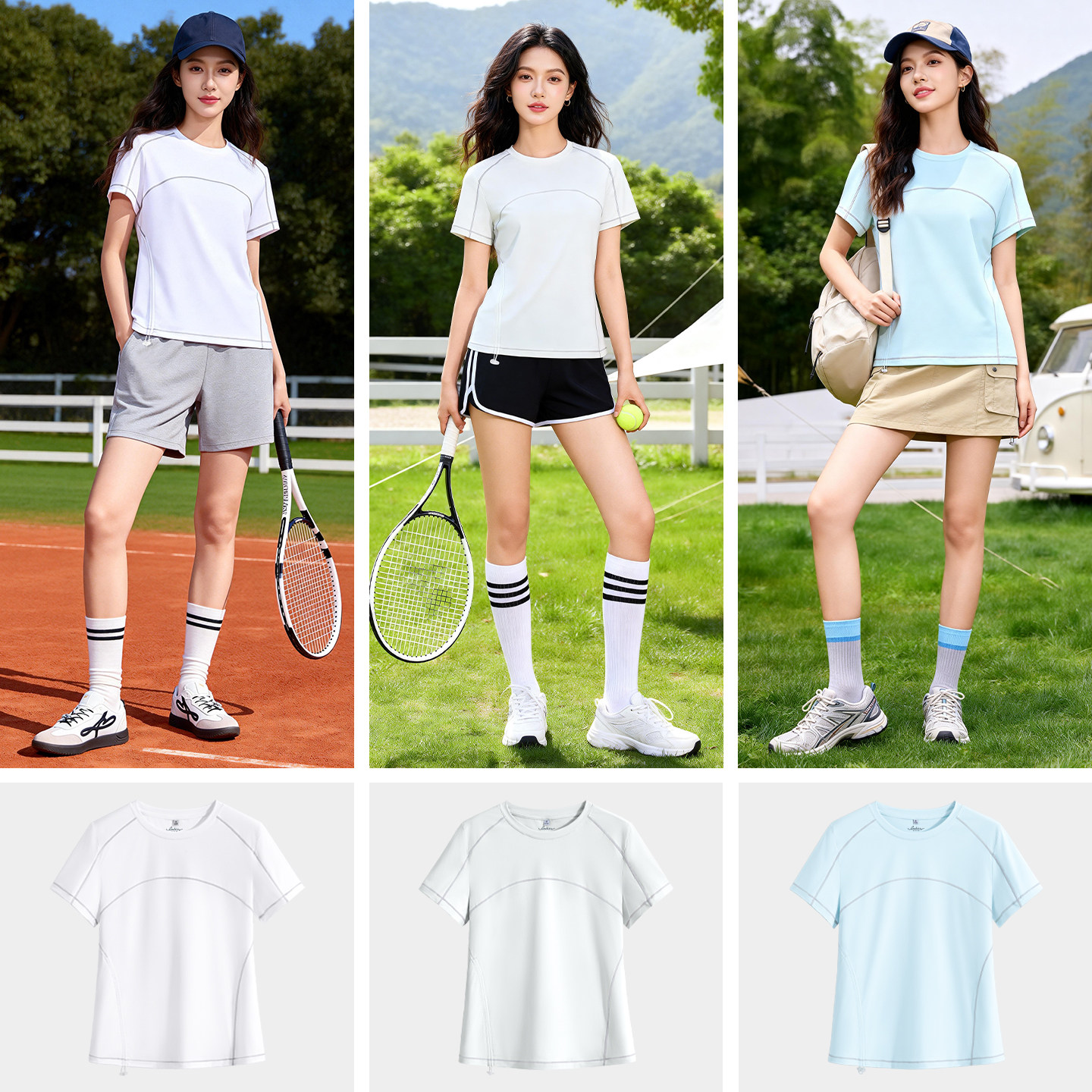 班尼路浅蓝色凉感撞色速干短袖T恤女款2026夏季新款户外防晒上衣H