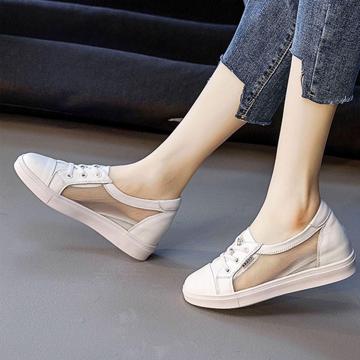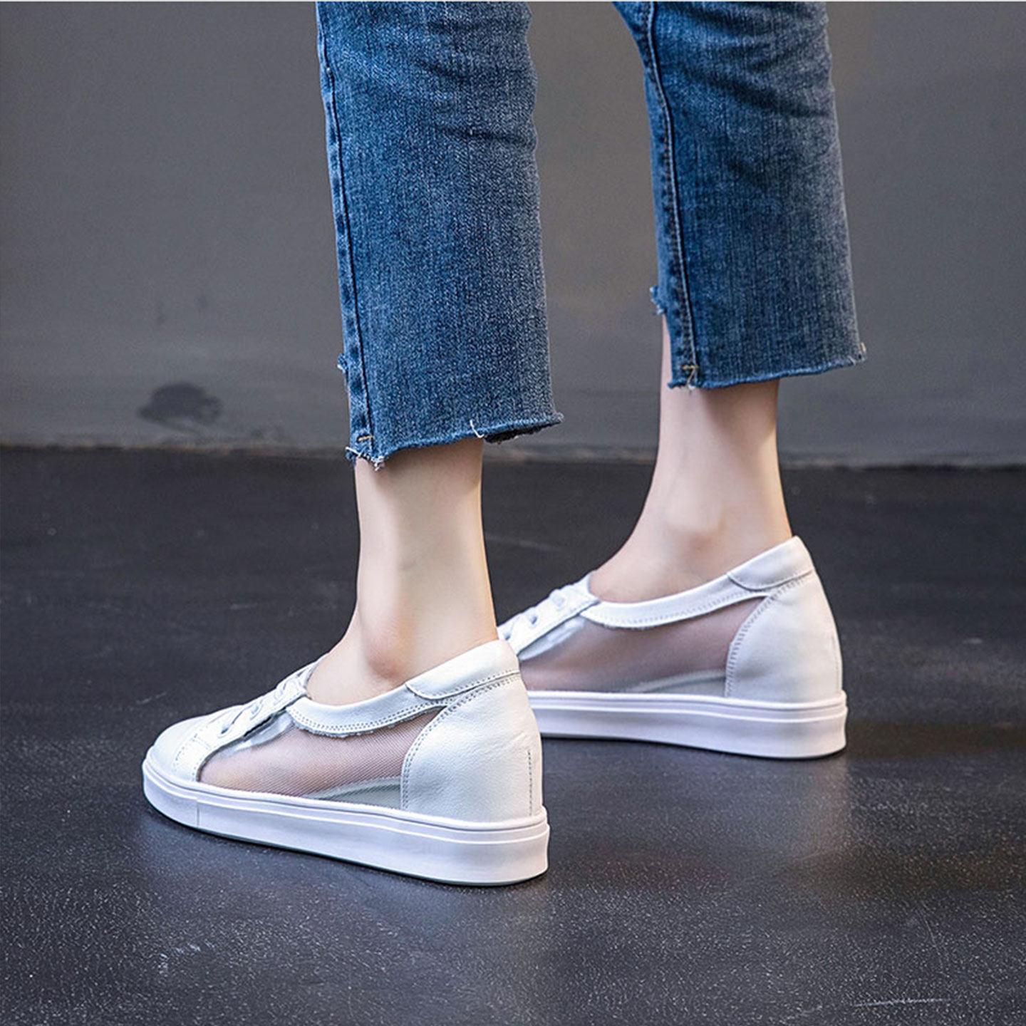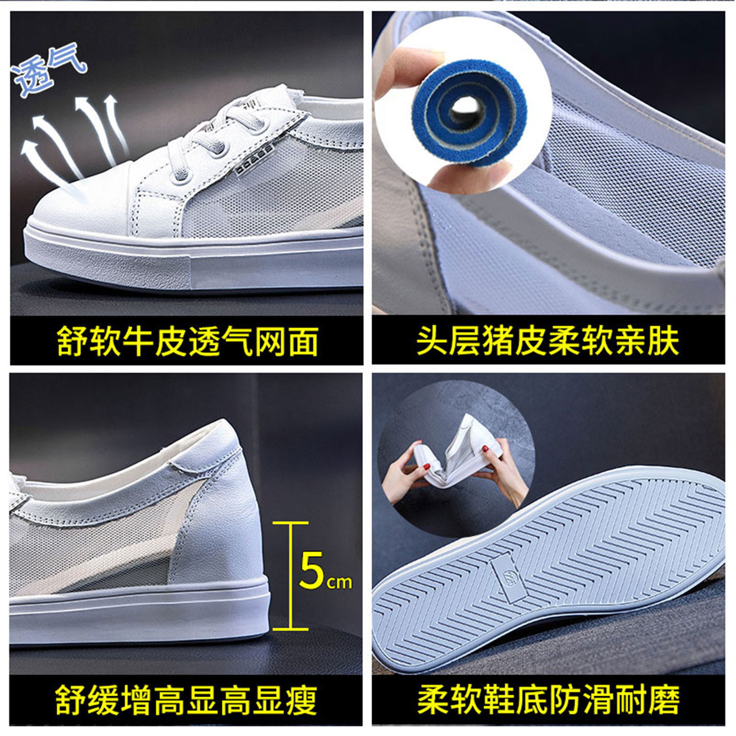 内增高小白鞋女真皮2026新款夏季网面透气浅口休闲显脚小板鞋女鞋