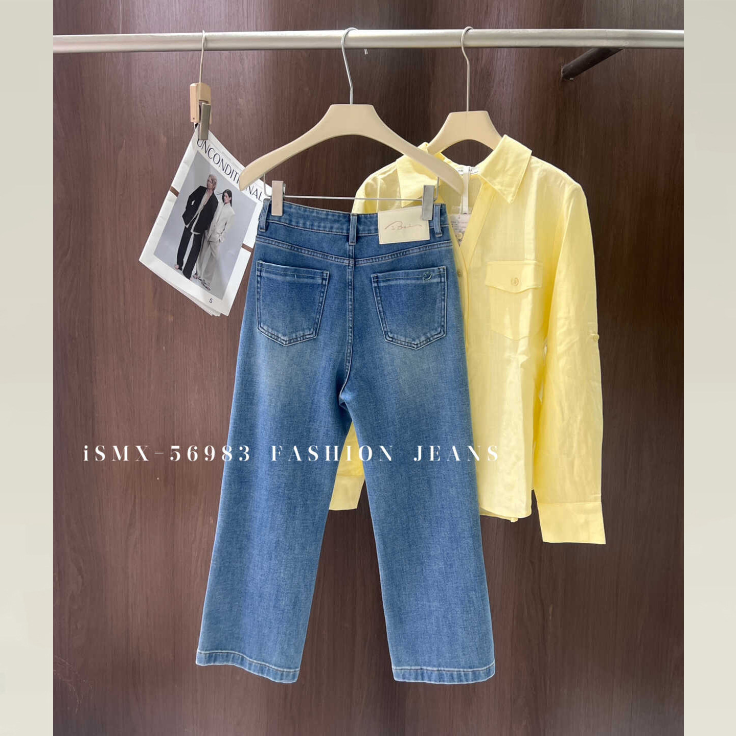 ismx夏季巨好看百搭的裤子女款小个子奶奶裤高腰显瘦九分牛仔裤女