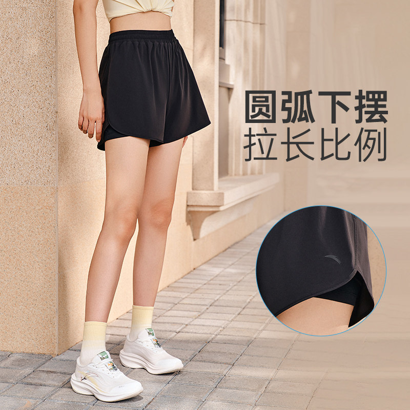 安踏冰丝裤丨运动短裤女夏季新款假两件健身跑步防走光透气瑜伽裤