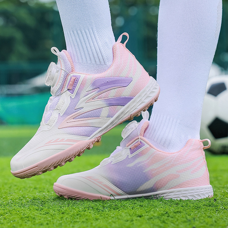C罗刺客儿童足球鞋女童小学生TF碎钉旋钮训练鞋女孩透气网面球鞋