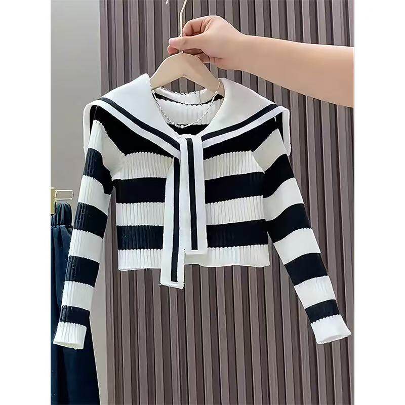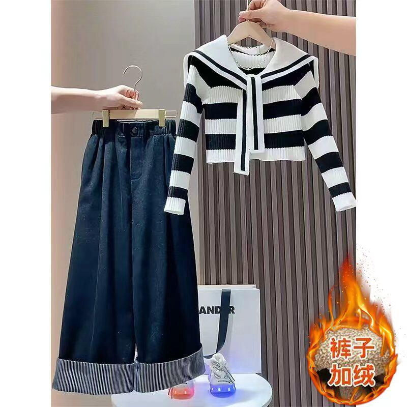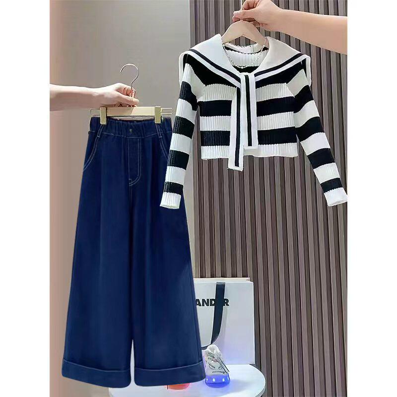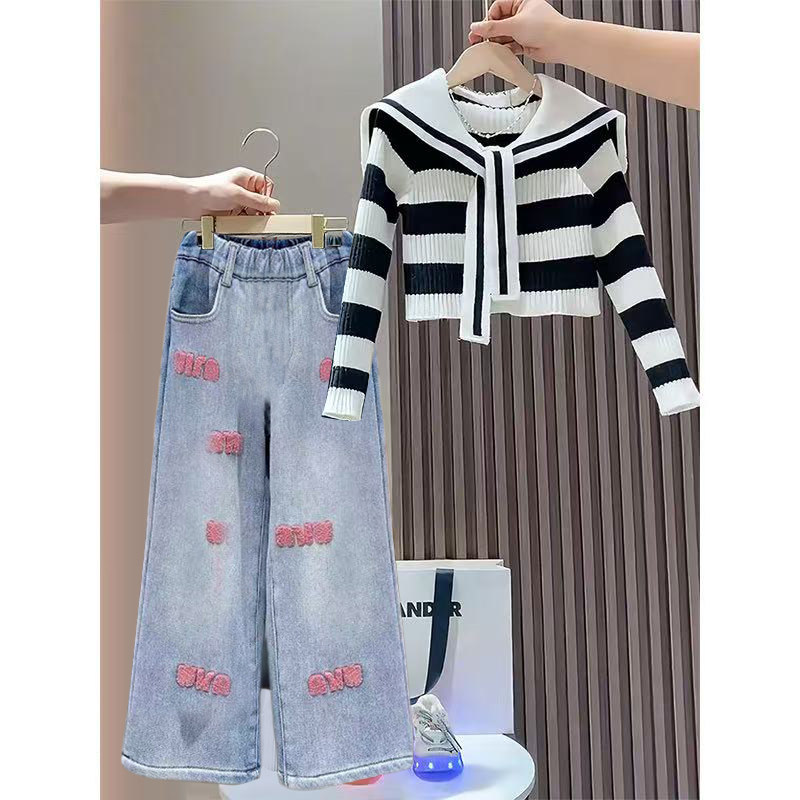 女童春装套装2026新款春季韩版时髦中大童毛衣牛仔裤炸街两件套