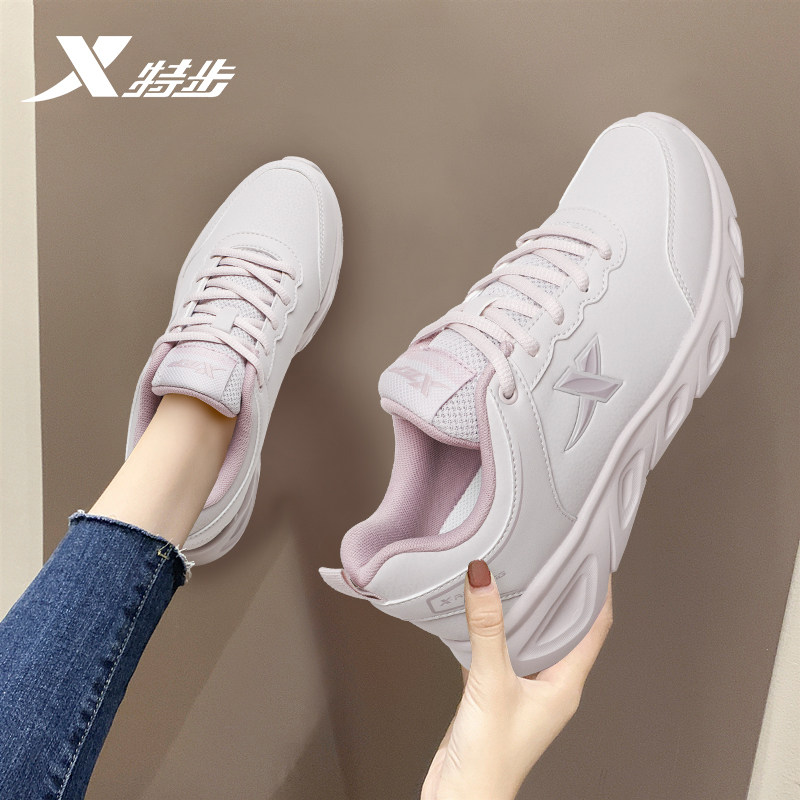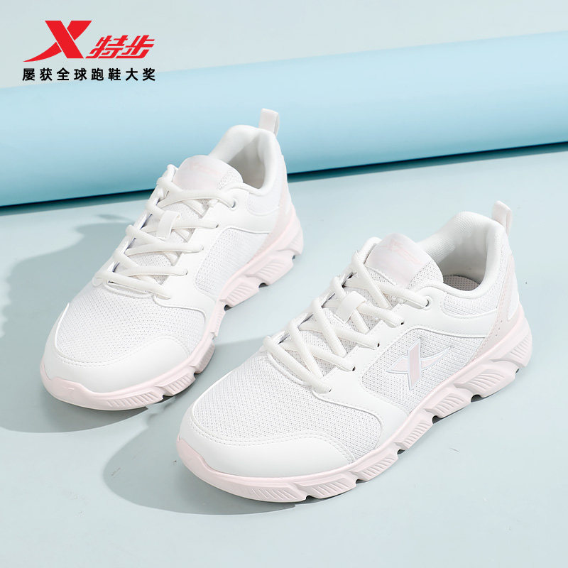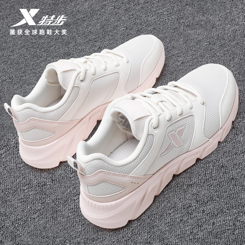 特步女鞋春季新款网面透气跑步鞋女士官方正品学生白色轻便运动鞋