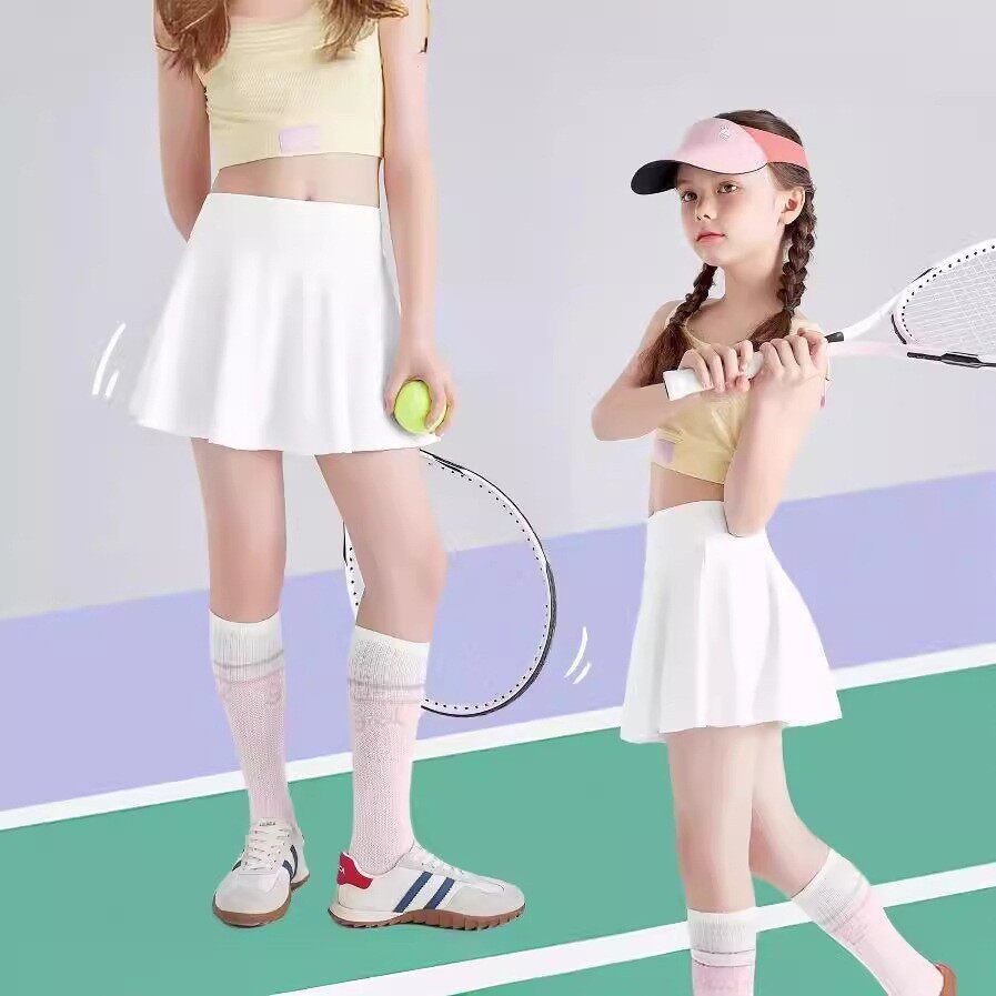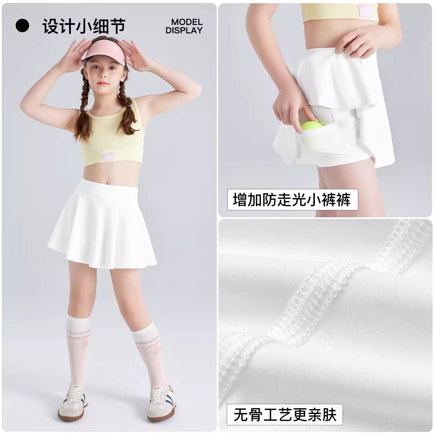 儿童网球裙女童半身裙夏季轻薄速干裙裤白色百褶裙防走光运动短裙