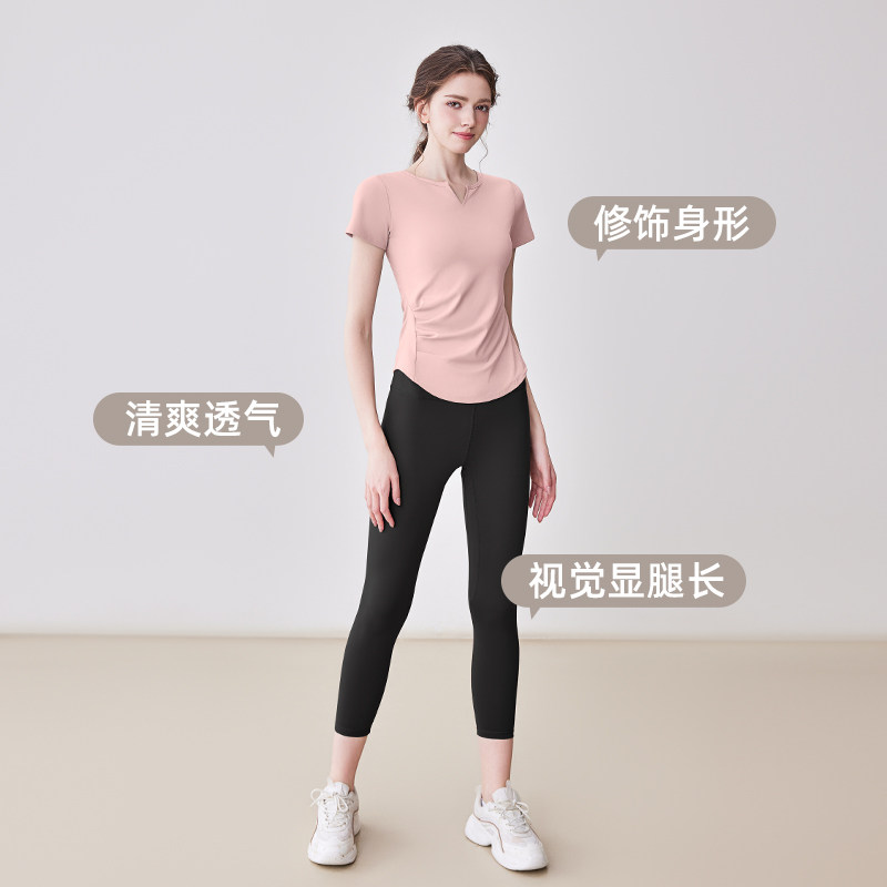 瑜伽服女2026新款专业跑步运动普拉提健身套装带胸垫短袖上衣夏季