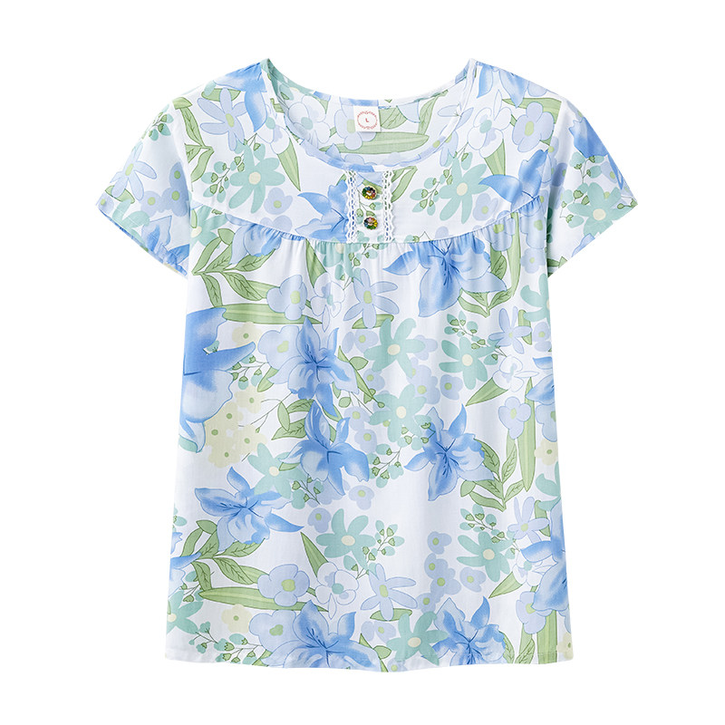 俞兆林棉绸女款睡衣女夏天套头短袖上衣单件家居上装夏季薄款大码