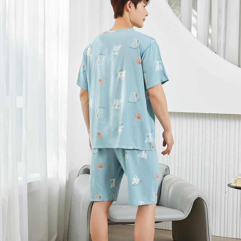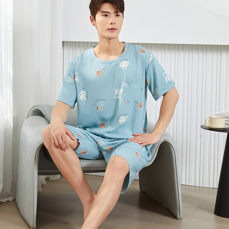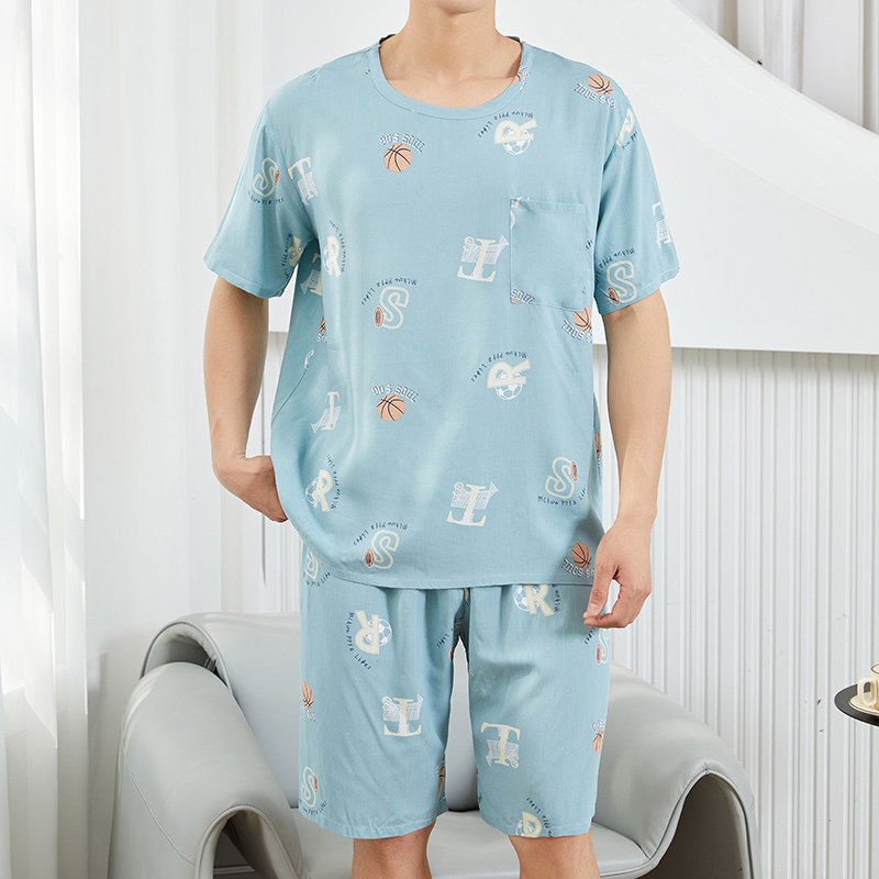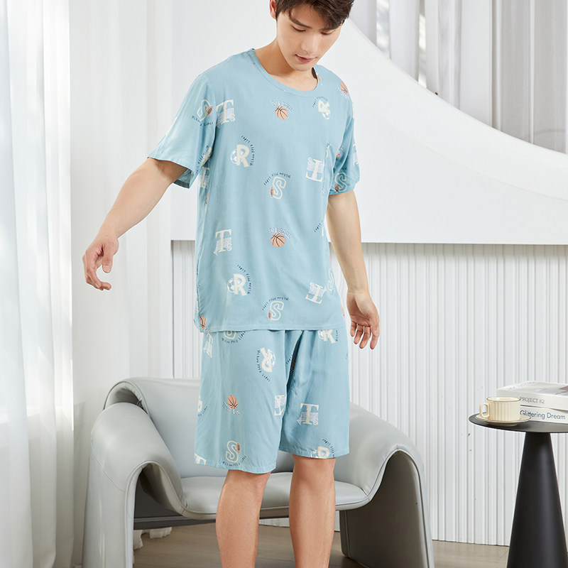 2026新款棉绸睡衣男款夏季凉感薄款短袖套装宽松青少年卡通家居服