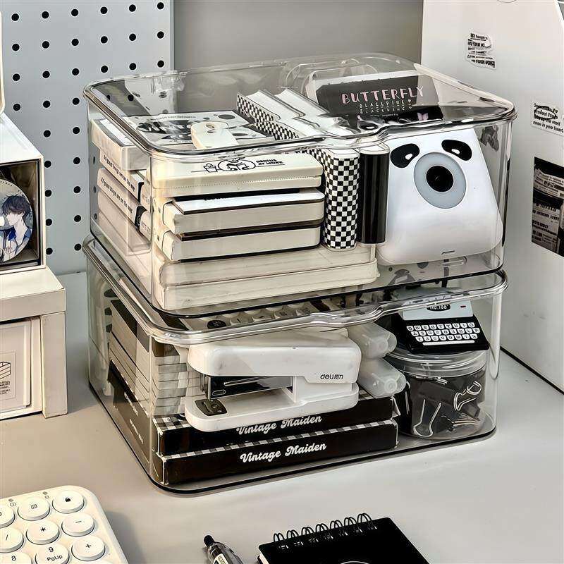 翻盖式桌面收纳盒透明压克力防尘整理盒卧室宿舍办公室带盖子收纳