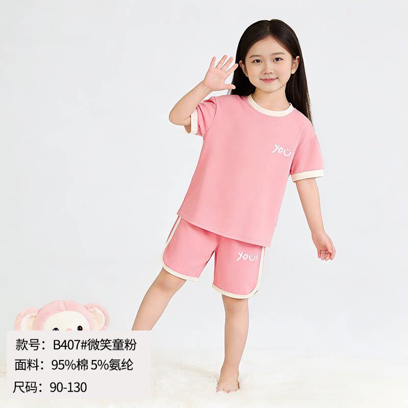 儿童纯棉a类短袖短裤套装夏男孩居家睡衣外穿女童凉感运动两件套
