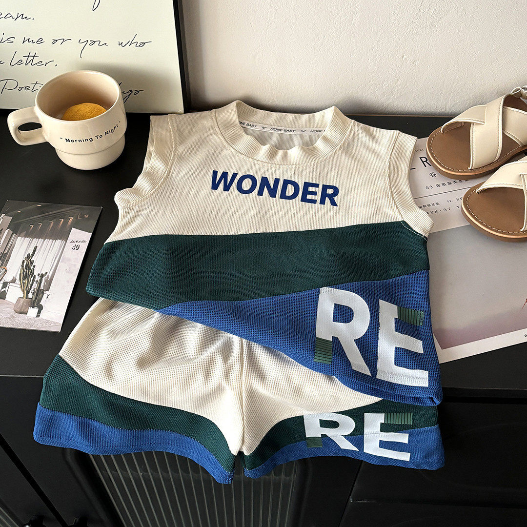 2026春季上新华夫格背心套装男童女童休闲短裤家居服运动无袖夏装