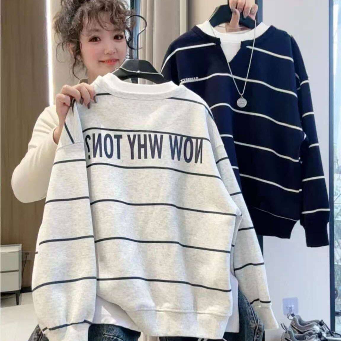 男童春装卫衣2026条纹新款假两件春秋季中大童痞帅洋气韩版上衣