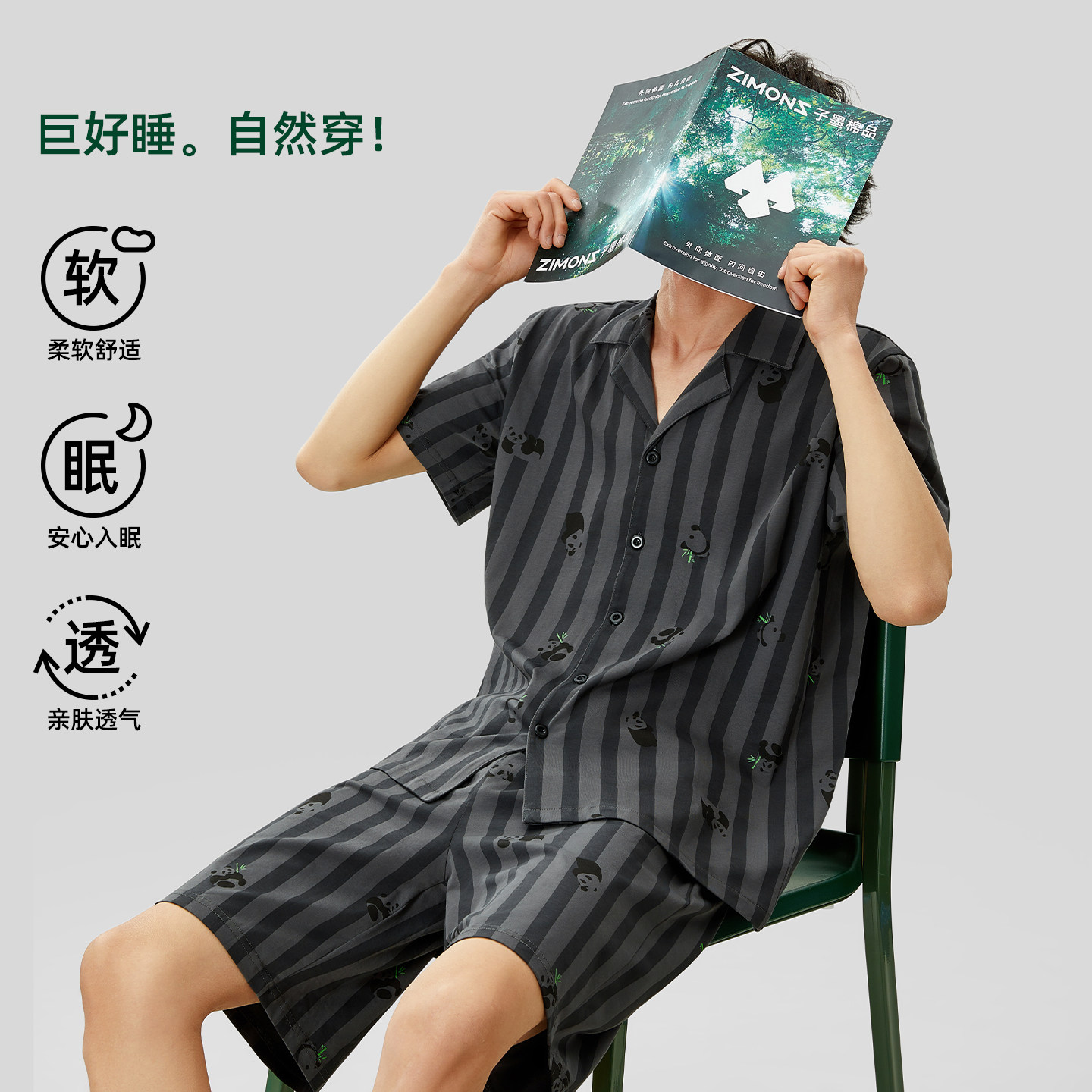 子墨纯棉睡衣男款家居服2026新款夏季休闲宽松可外穿短袖短裤套装