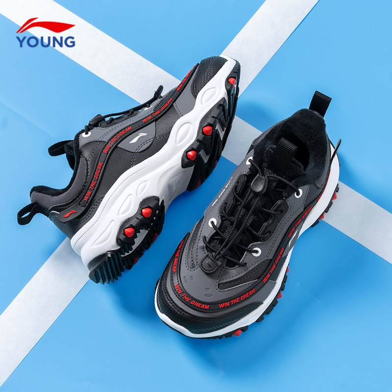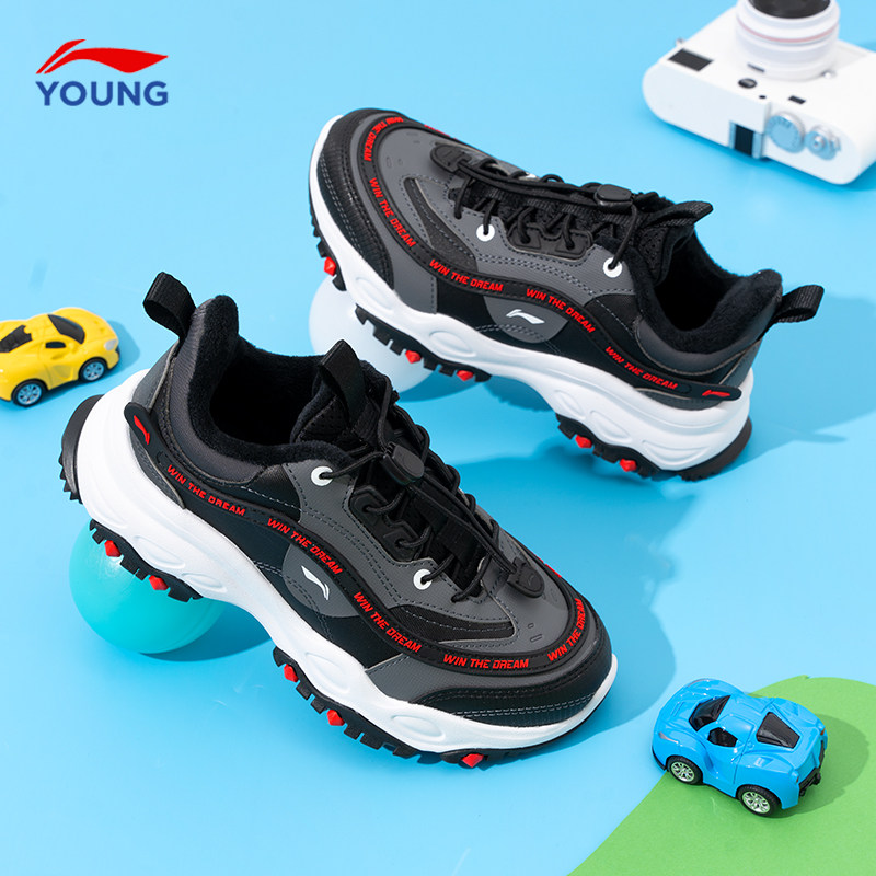李宁启悦男童鞋二棉鞋2025新款冬季儿童加绒运动鞋青少年休闲鞋子