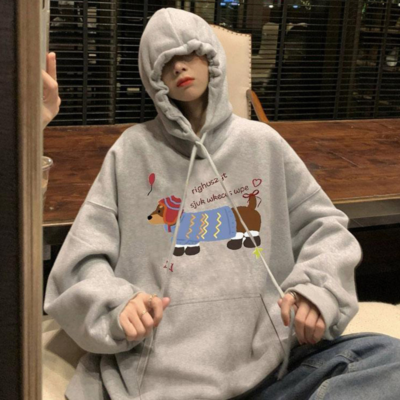 灰色宽松连帽卫衣女款2026秋冬新款爆款大码胖mm加绒加厚套头上衣