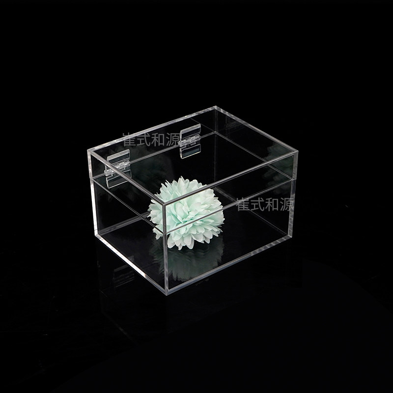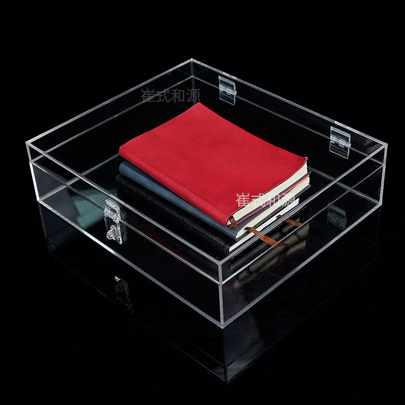 透明翻盖收纳盒带锁亚克力展示盒防尘化妆品盒桌面文具储物箱带盖