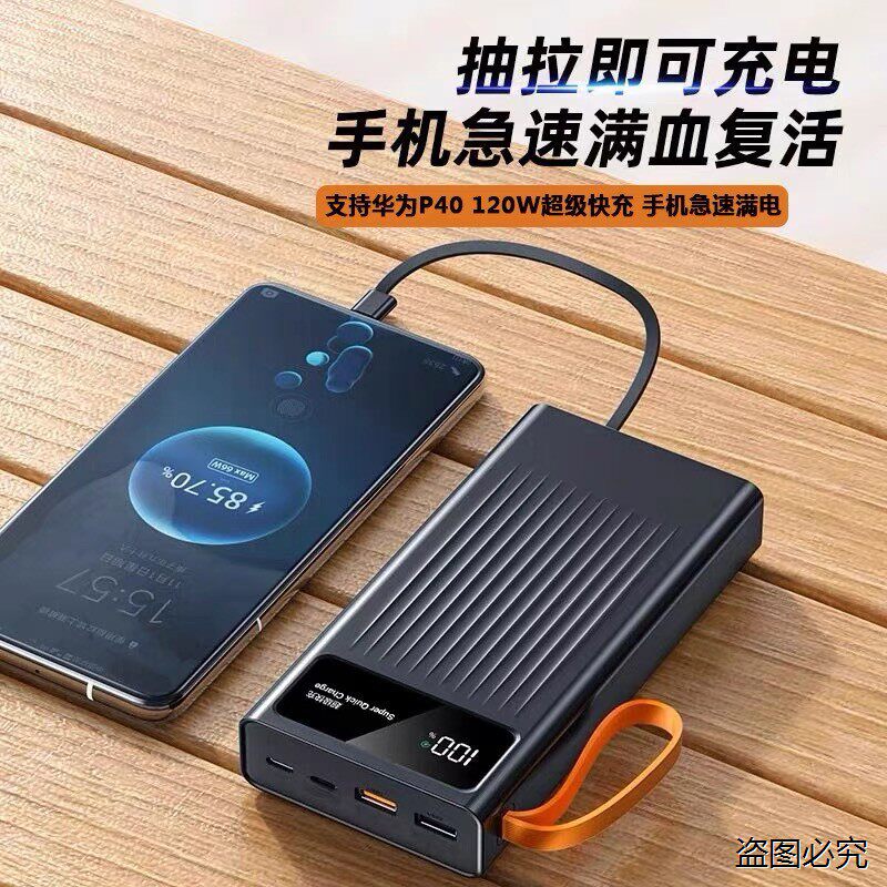充电宝3c认证可上飞机标识2026新款120W超级快充闪充大容量自带线