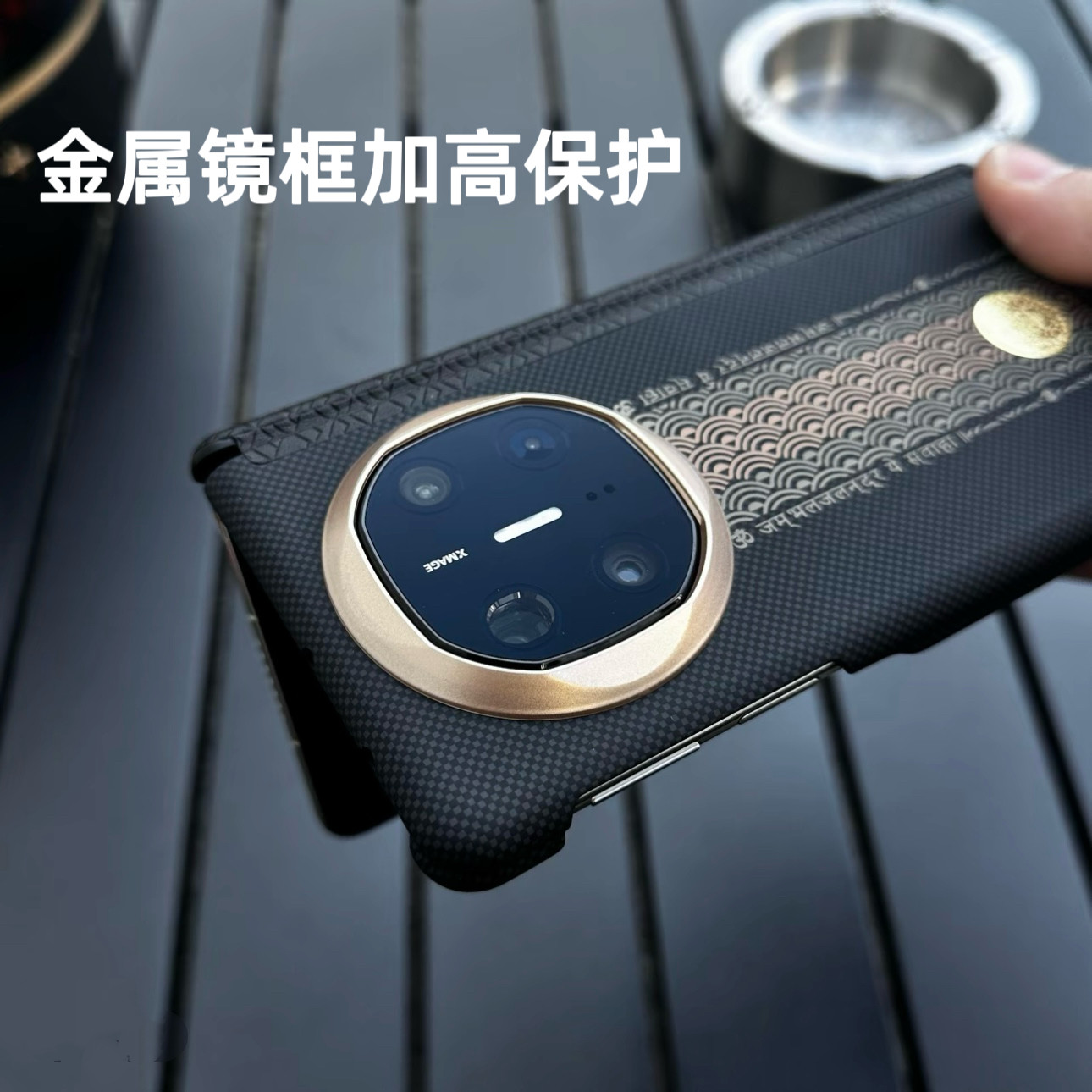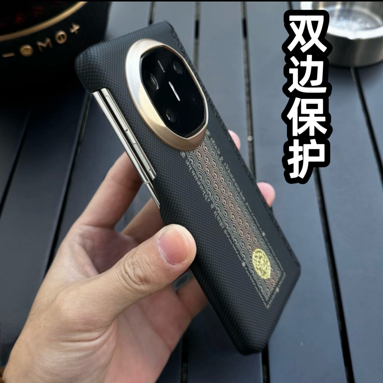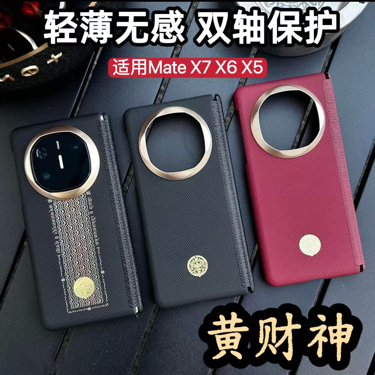 双边保护黄财神适用华为MateX6手机壳新款mateX7碳纤维纹理超薄X6典藏版全包防摔X5磁吸轻奢商务PC男女保护套