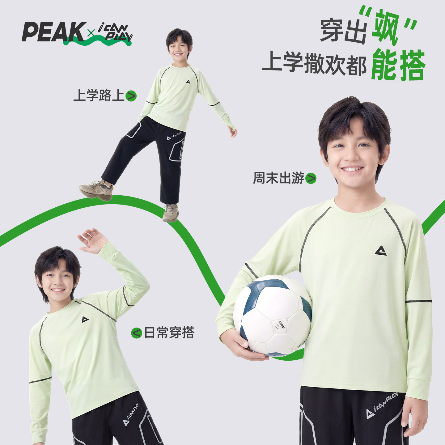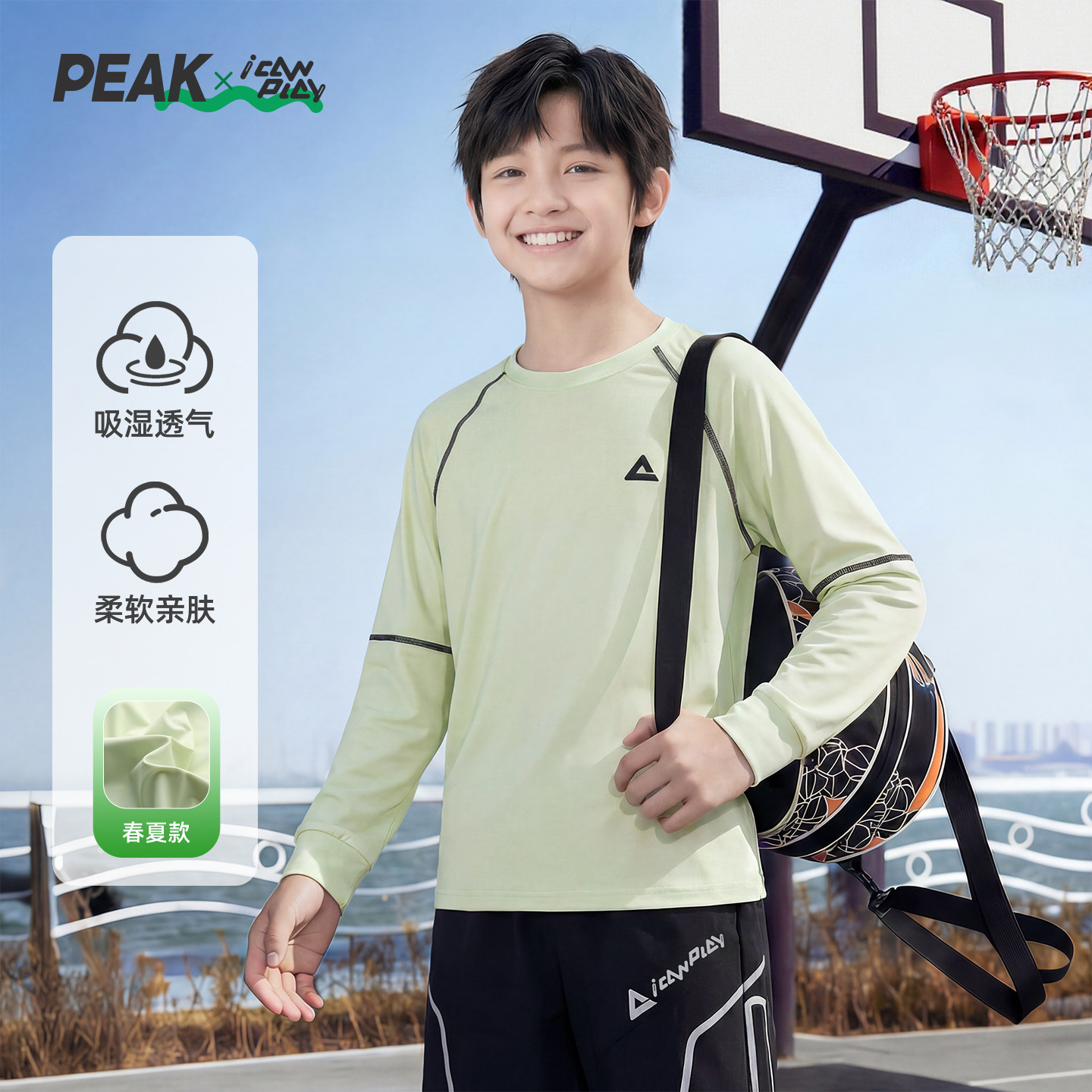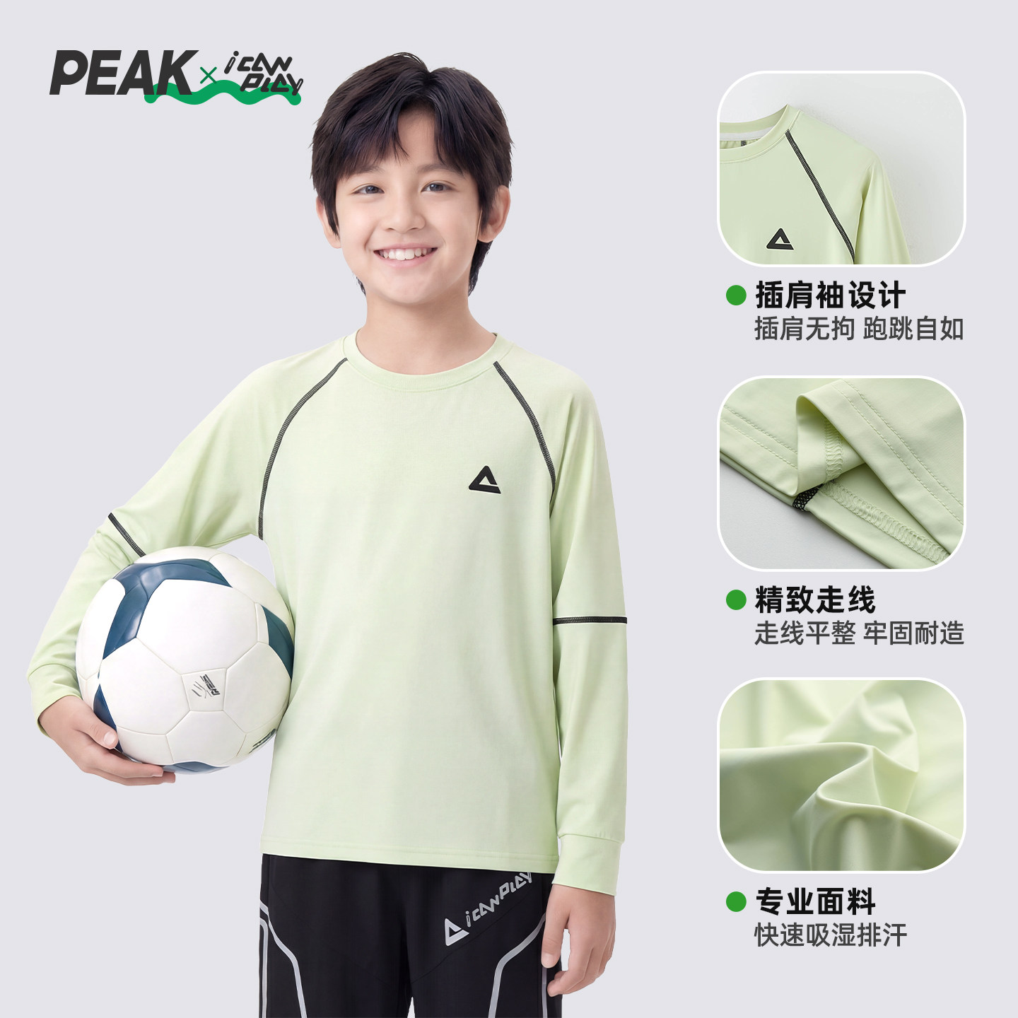 匹克男童长袖T恤速干衣透气春秋防晒夏吸湿儿童户外运动训练服