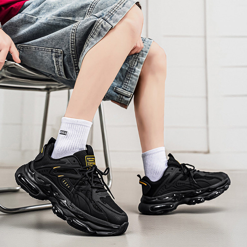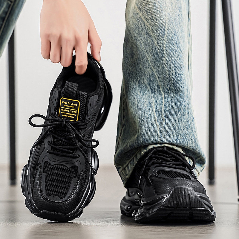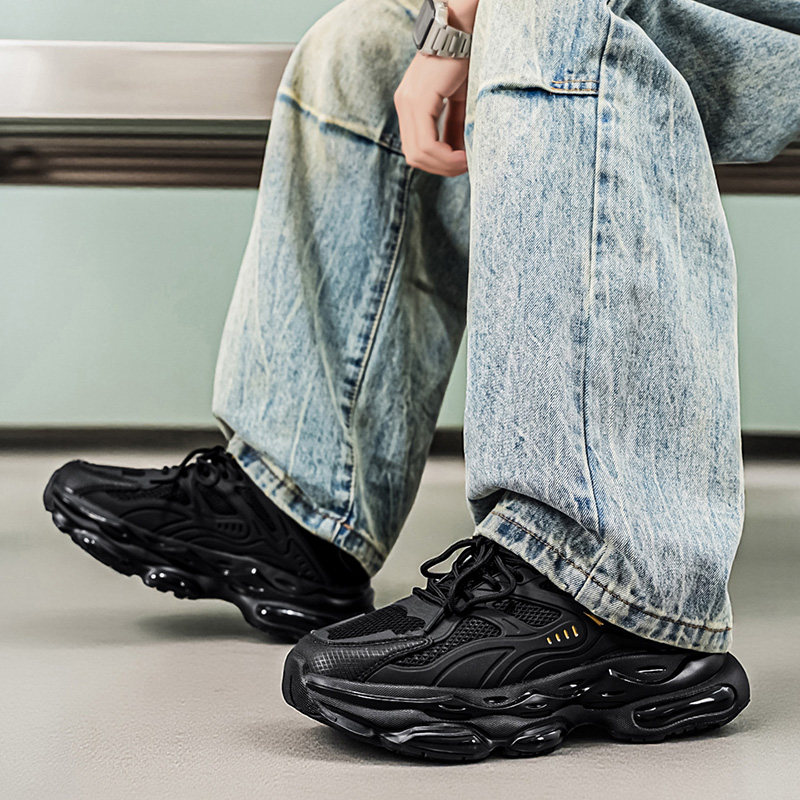 男鞋2026新款夏季透气网面运动跑步休闲气垫减震增高黑色老爹潮鞋