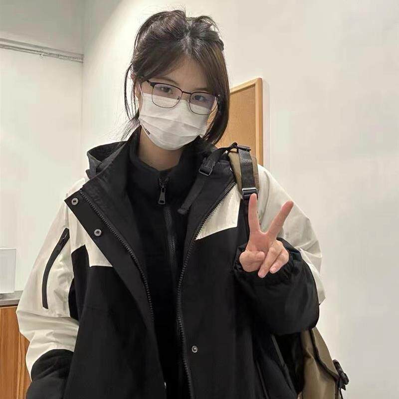 冲锋衣外套春秋三合一可拆卸日系潮牌工装棉服冬季男女款连帽夹克