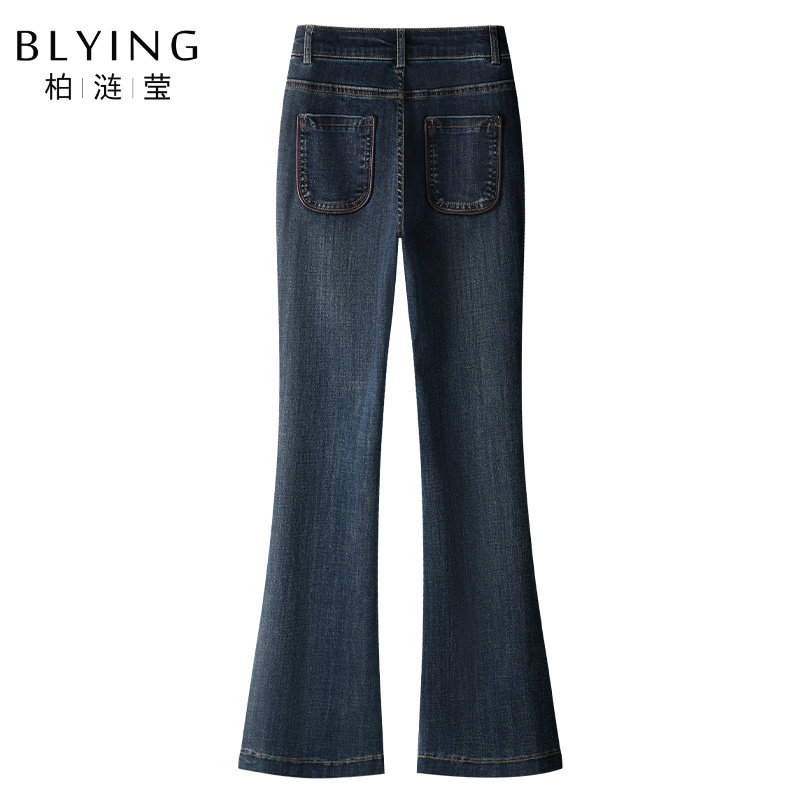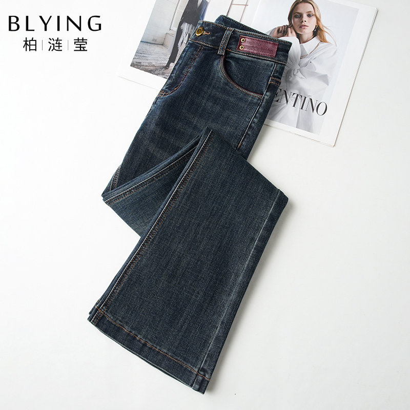 深蓝色微喇牛仔裤女2026新款夏季高腰小个子九分喇叭裤显瘦马蹄裤