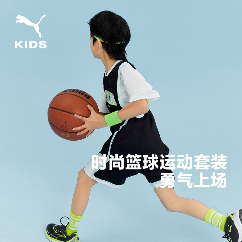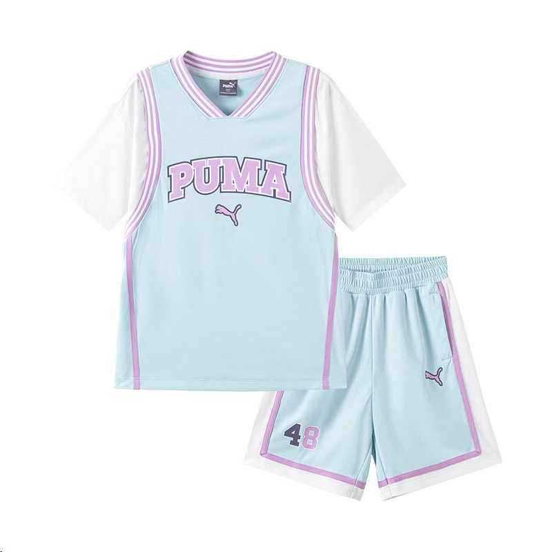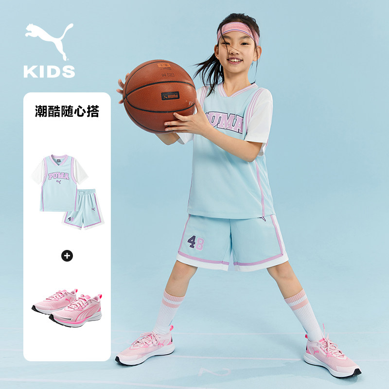 PUMA彪马女童套装新款夏季短袖短裤中大童速干运动儿童篮球衣服潮