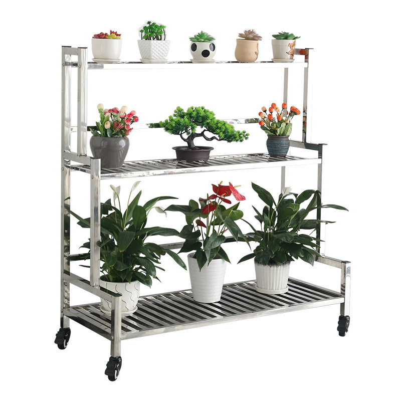 不锈钢花架户外多层置物阳台室内多肉大盆栽落地式简约可移动架子