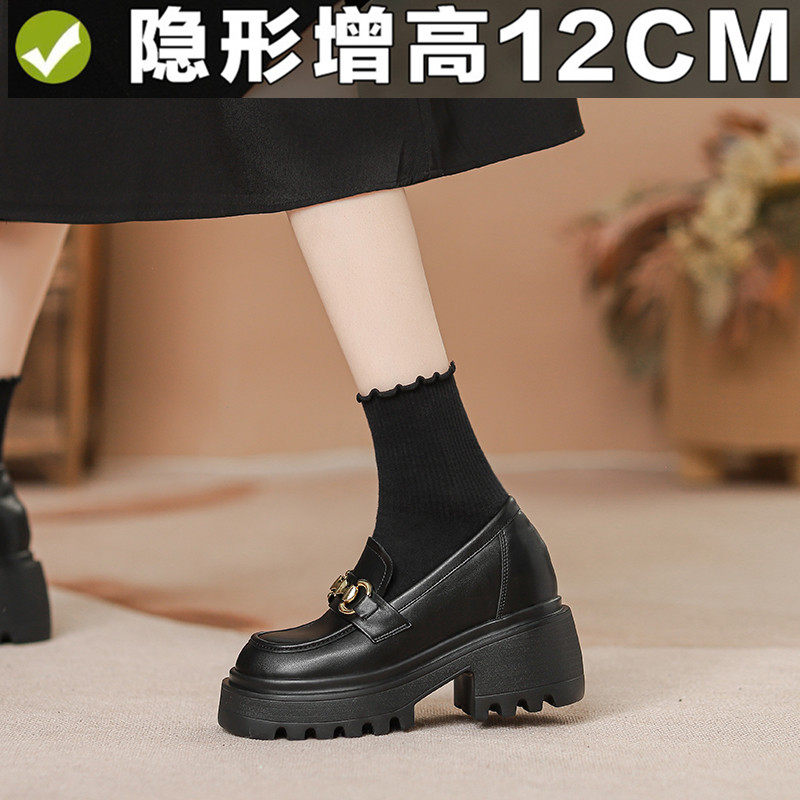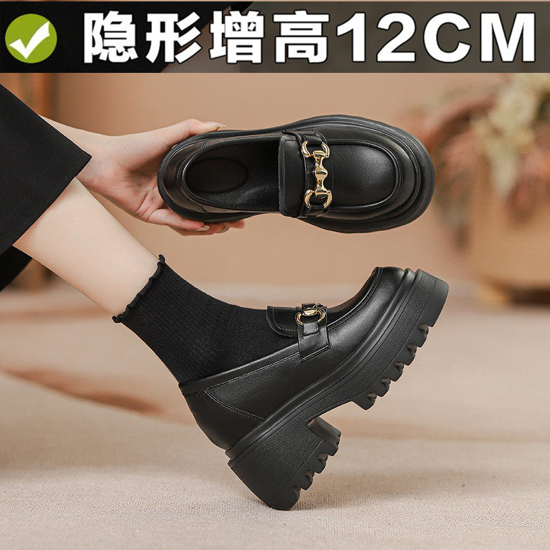 真皮内增高乐福鞋女2025新款厚底小个子超高跟英伦风黑色通勤单鞋