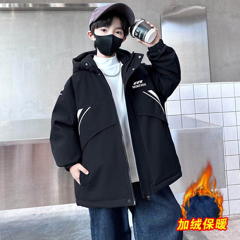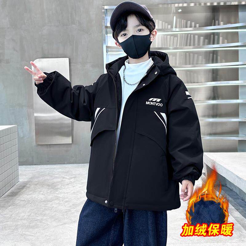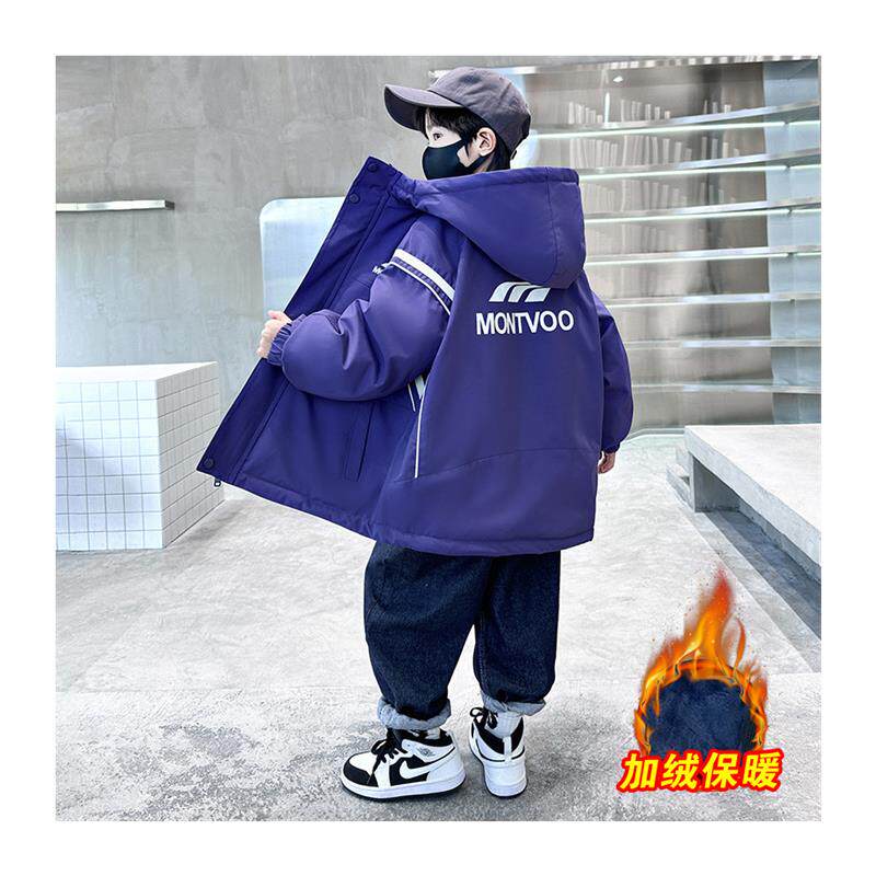男童加绒外套秋冬装风衣2025新款洋气中大童冬季加厚派克服棉衣潮