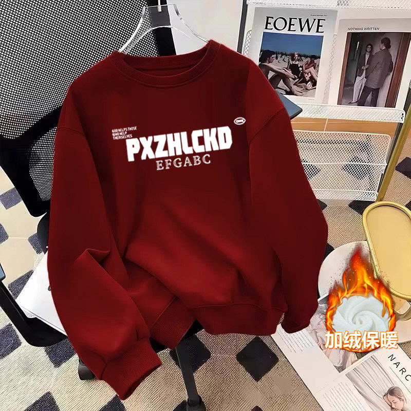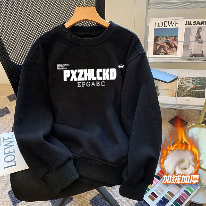 白灰色重磅纯棉卫衣男款秋冬青少年初中生高中生潮流加绒圆领无帽