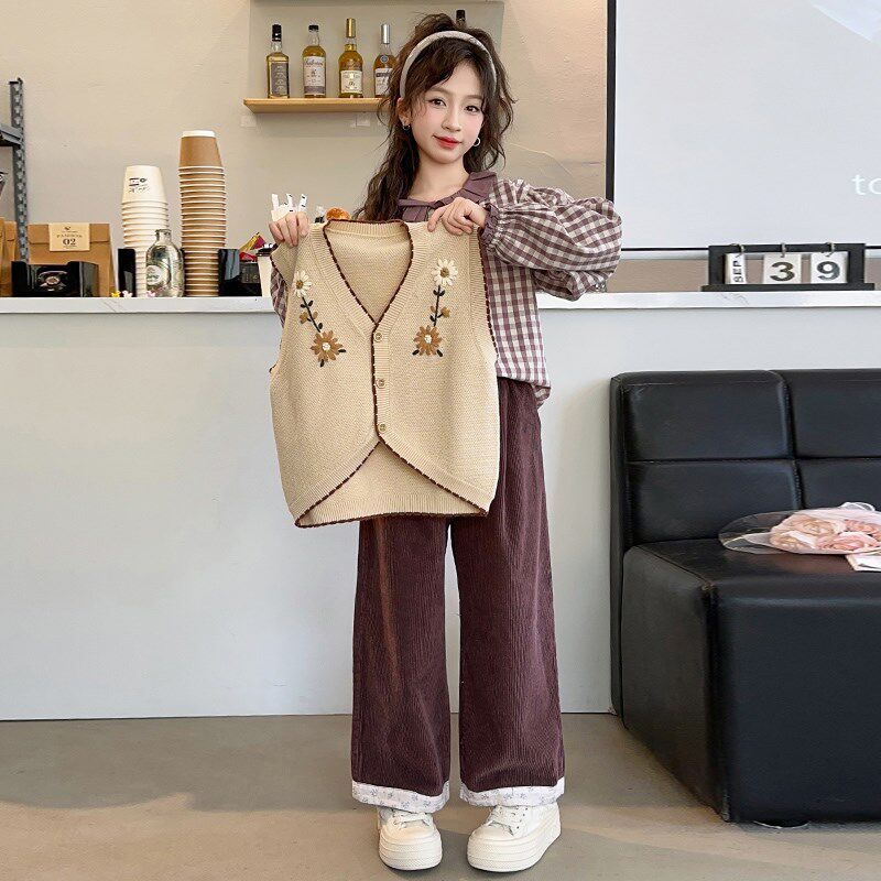 女童针织马甲秋冬装2024新款中大童洋气毛衣叠穿上衣冬季打底外穿