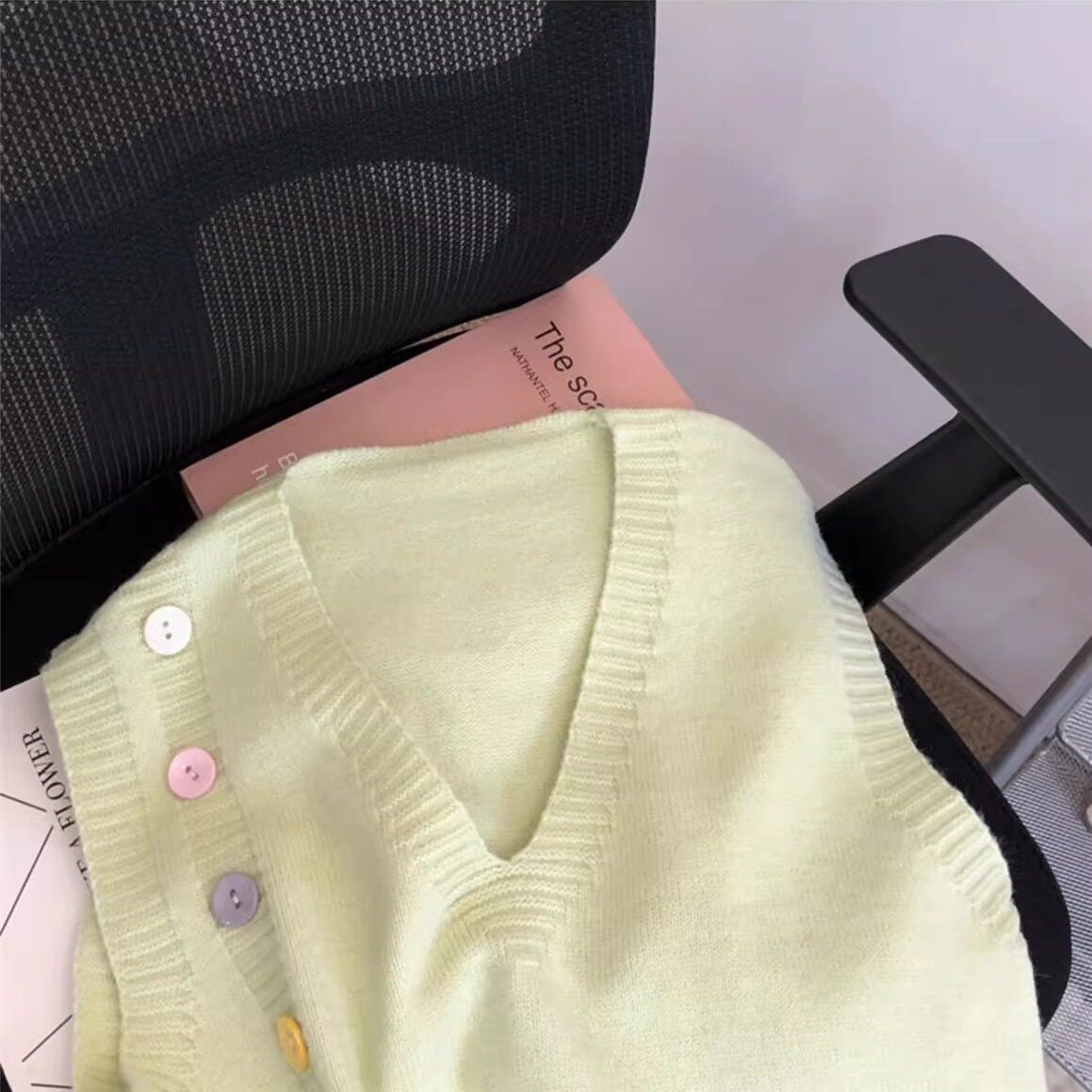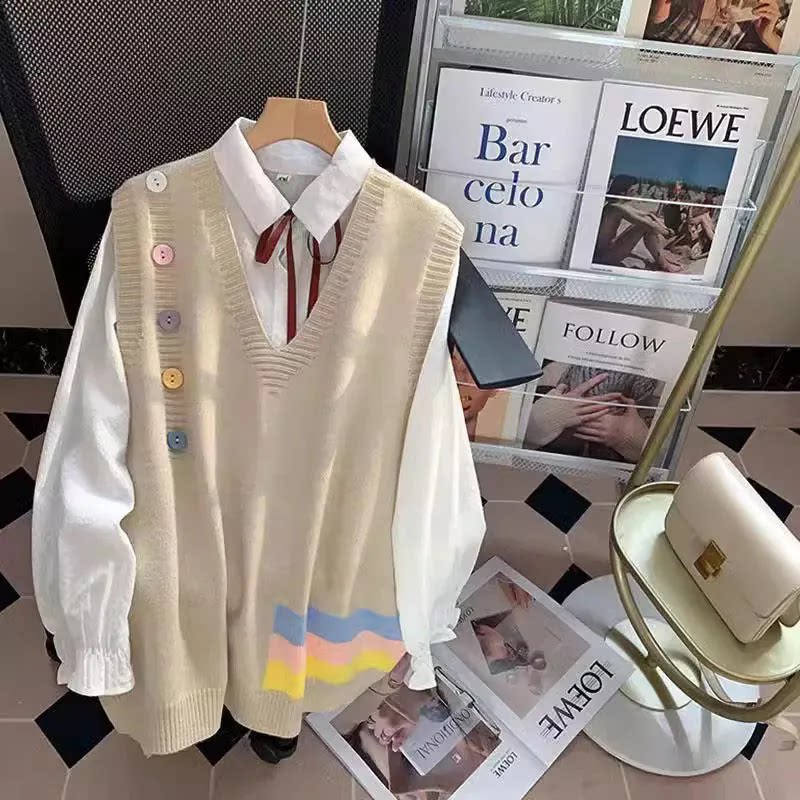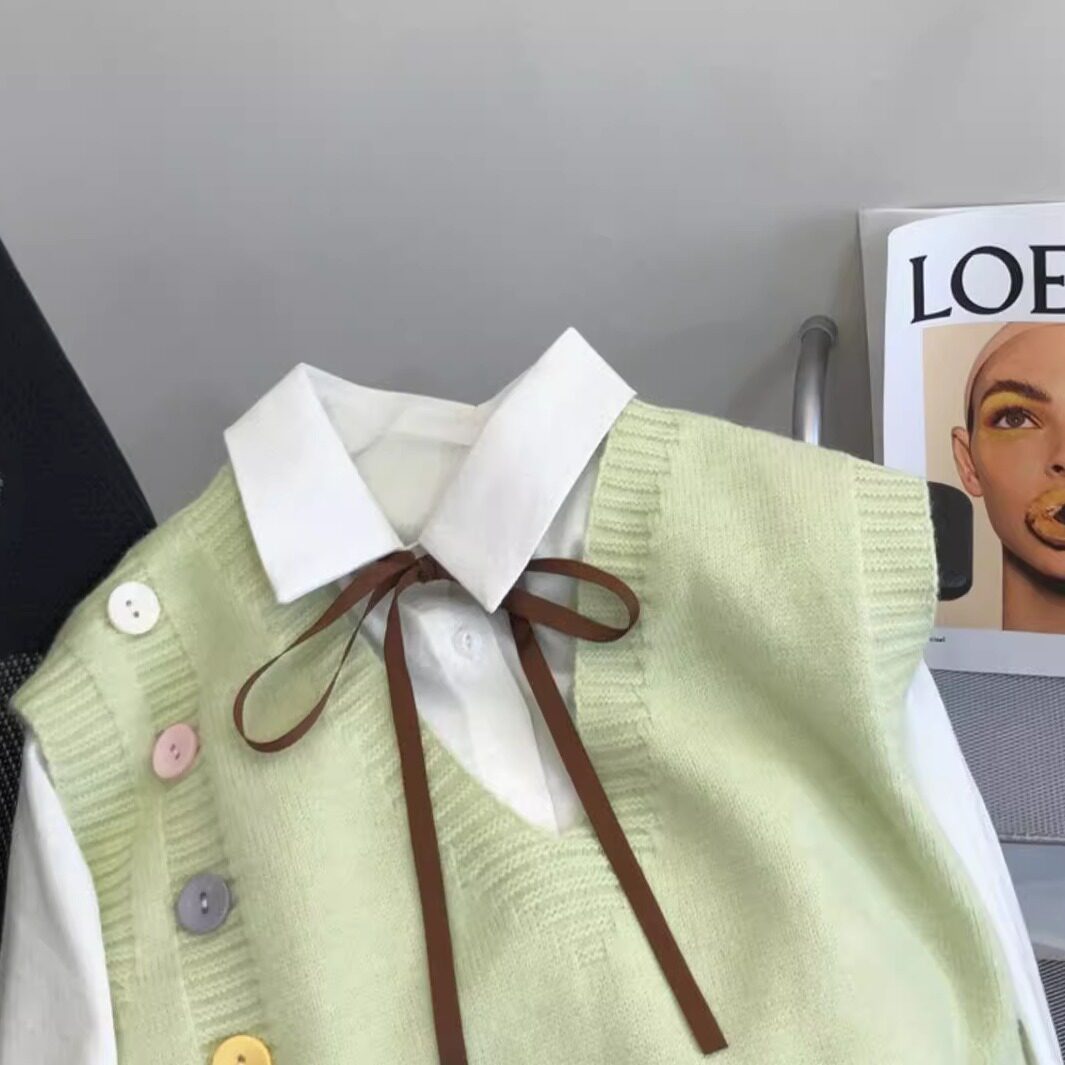 小清新V领针织马甲毛衣背心女童外搭2025年新款学院风叠穿坎肩2件