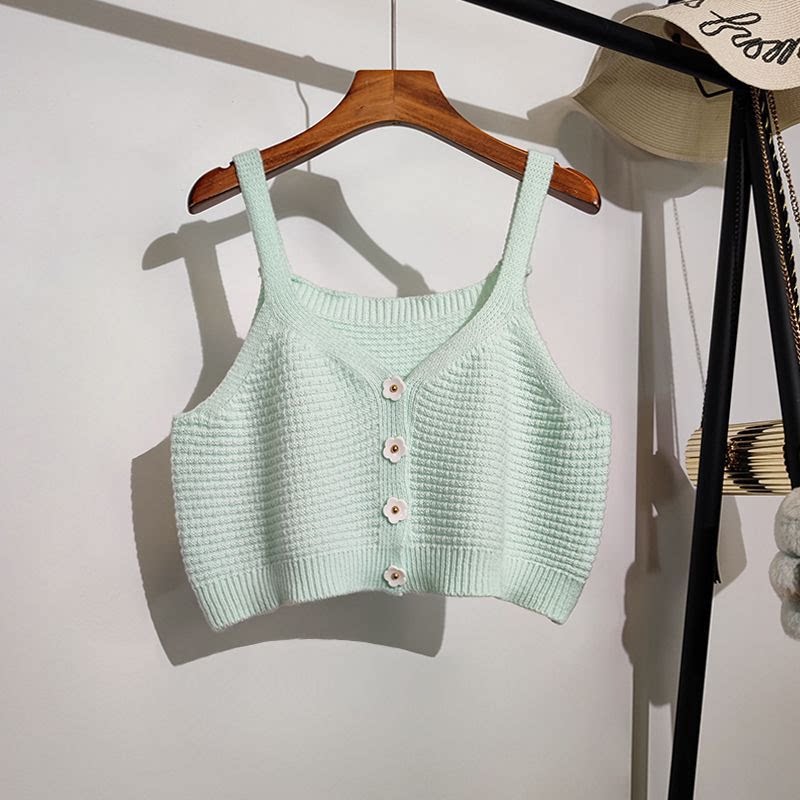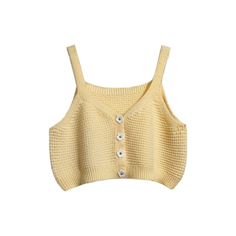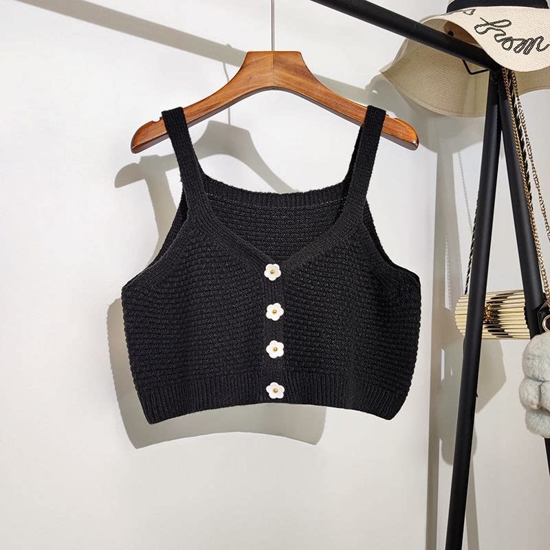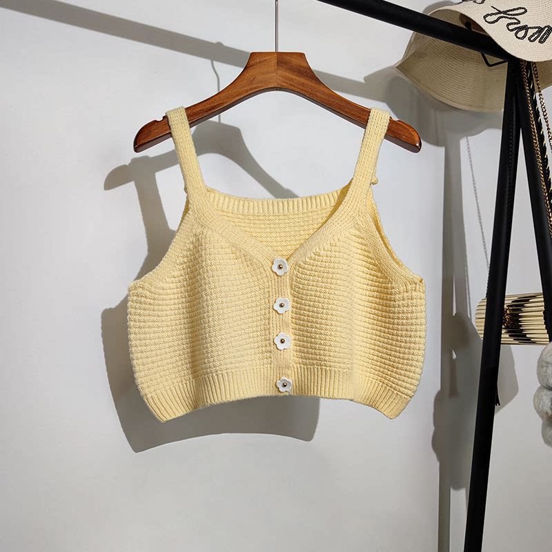 儿童针织背心马甲夏女童温柔风开衫叠穿短款无袖毛线吊带上衣毛衣