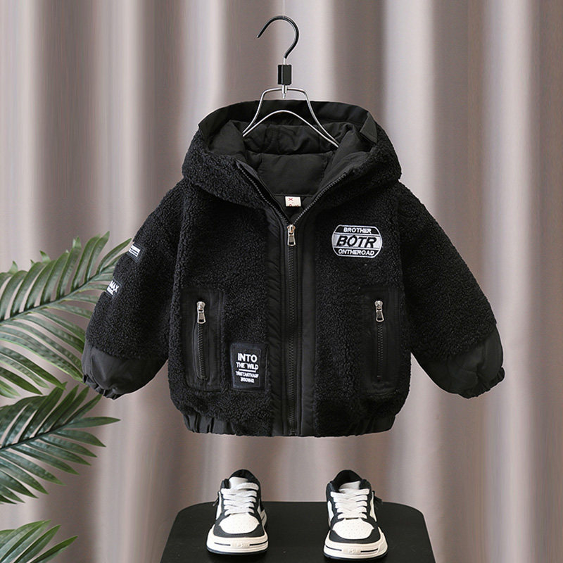 男童羊羔绒外套秋冬装2026新款宝宝加厚上衣儿童冬季夹棉保暖童装