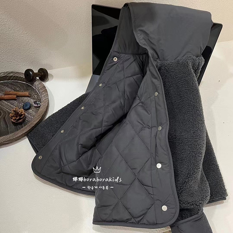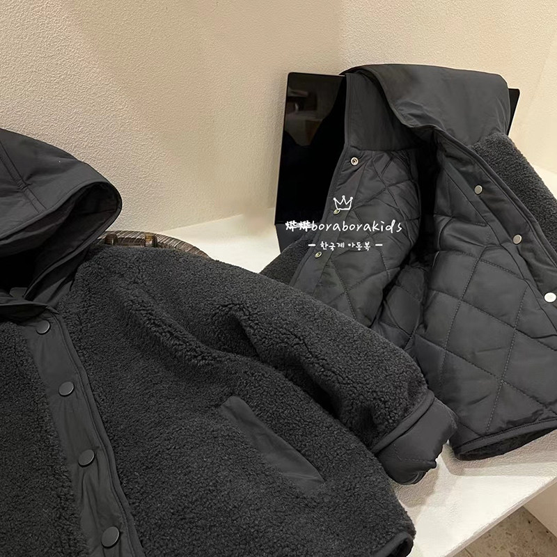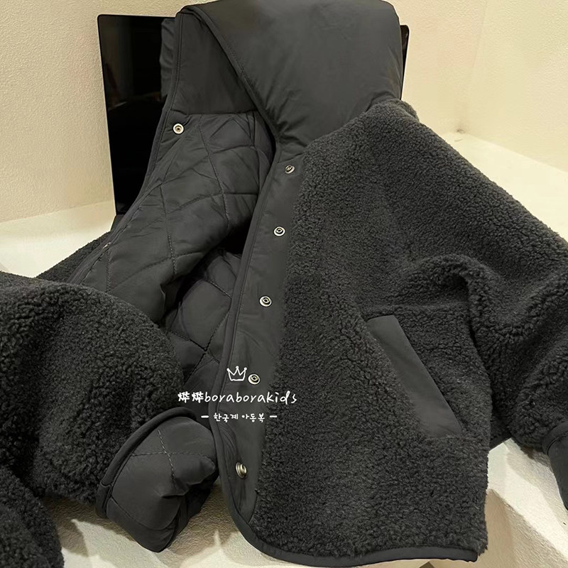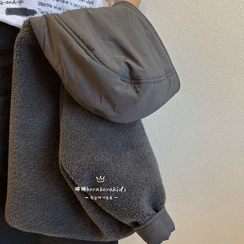 韩国童装男童两面穿羊羔绒外套2026冬新款儿童摇粒绒棉服时尚洋气