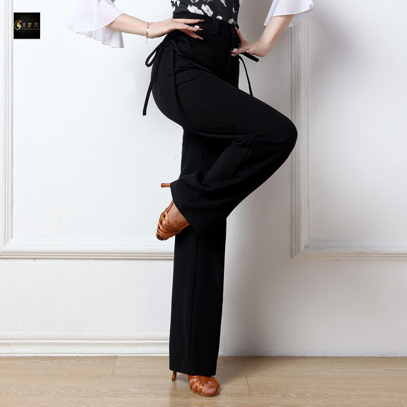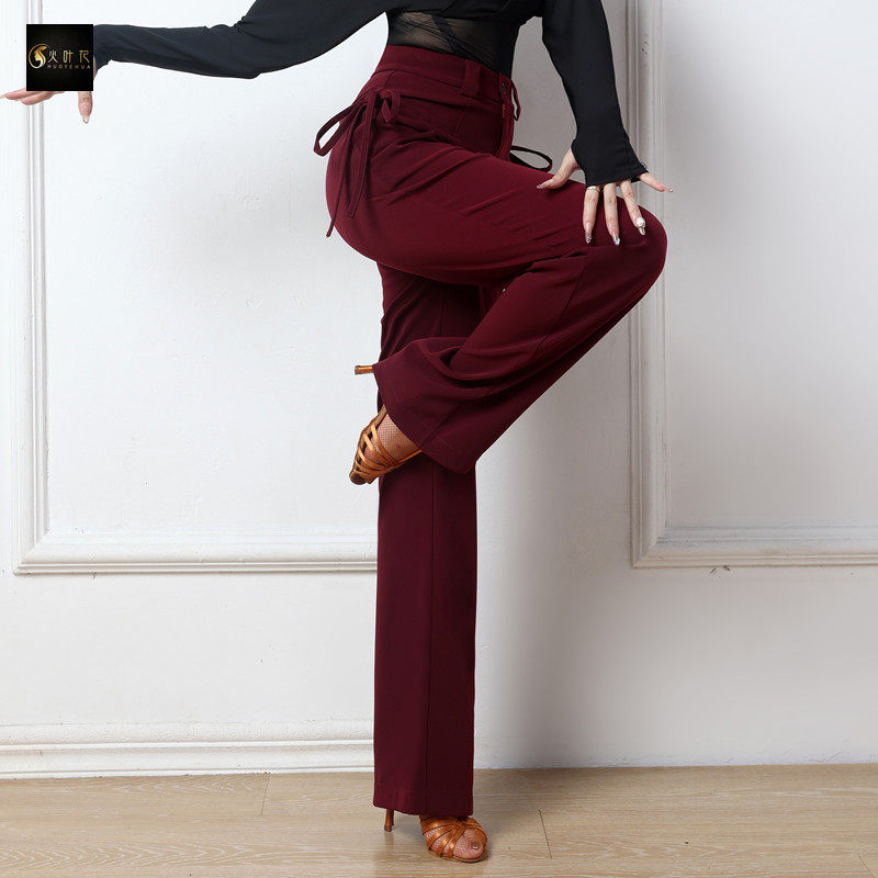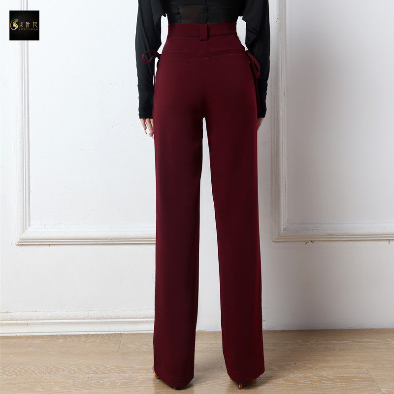 火叶花拉丁舞高腰小直筒长裤女系带摩登交谊舞蹈跳舞练功裤子成人