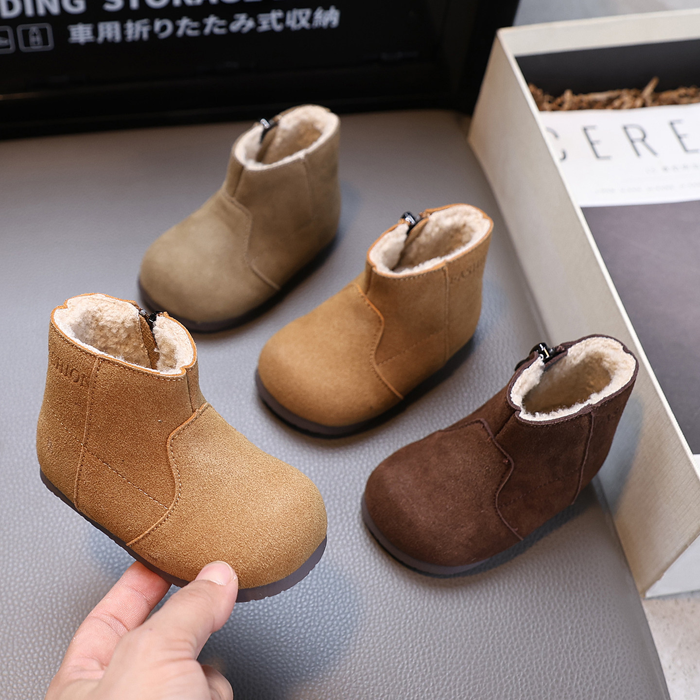 女童宝宝真皮棉靴子软底加绒二棉公主靴男童短靴婴幼儿勃肯皮鞋冬